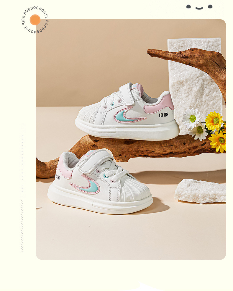 Babu 콩 어린이 신발 2023 가을 새 소년 소녀 유아 신발 어린이 편안한 캐주얼 쉘 헤드 작은 흰색 신발