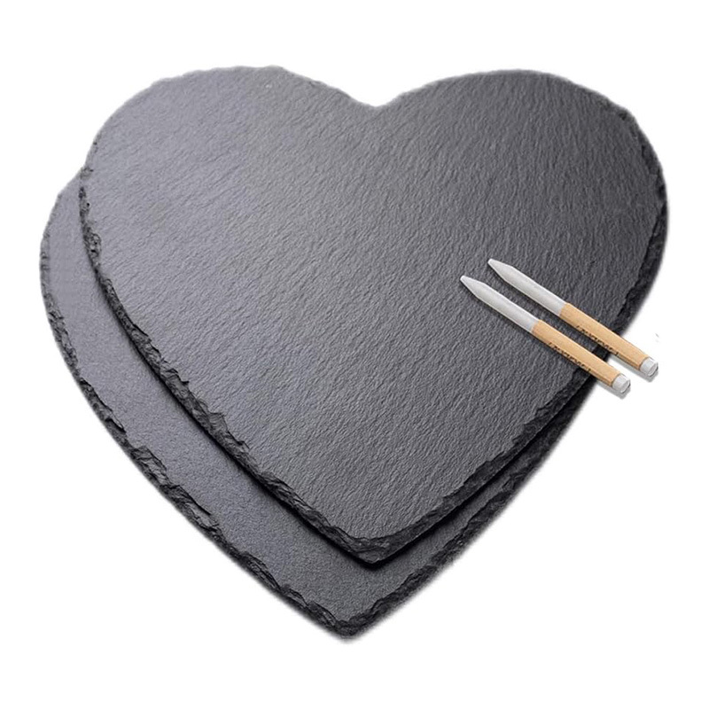 국경 간 직공급 공장 도매 하트형 블랙 천연 슬레이트 플레이트 암석 플레이스매트 셰일 컵 받침 UV 패턴 가능스토어 가기