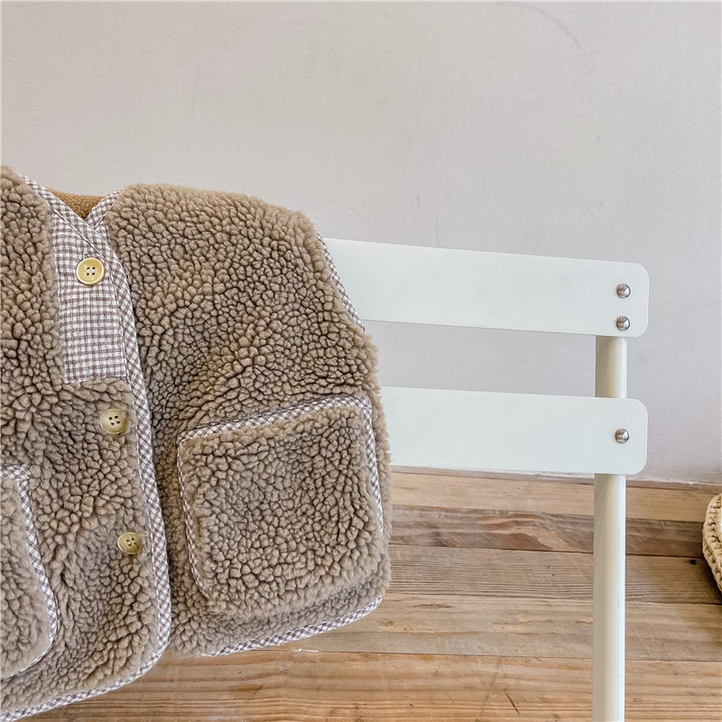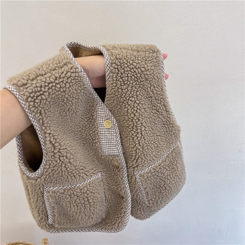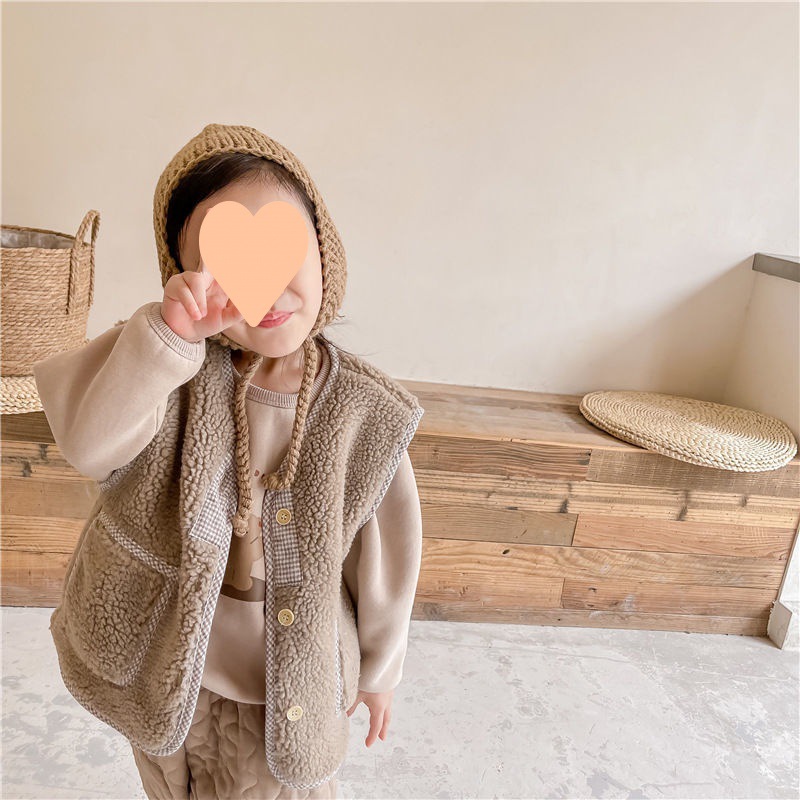아동복 가을과 겨울 새로운 어린이 한국식 양고기 벨벳 기모 두꺼운 조끼 소년 소녀 아기 느슨한 겉옷스토어 가기