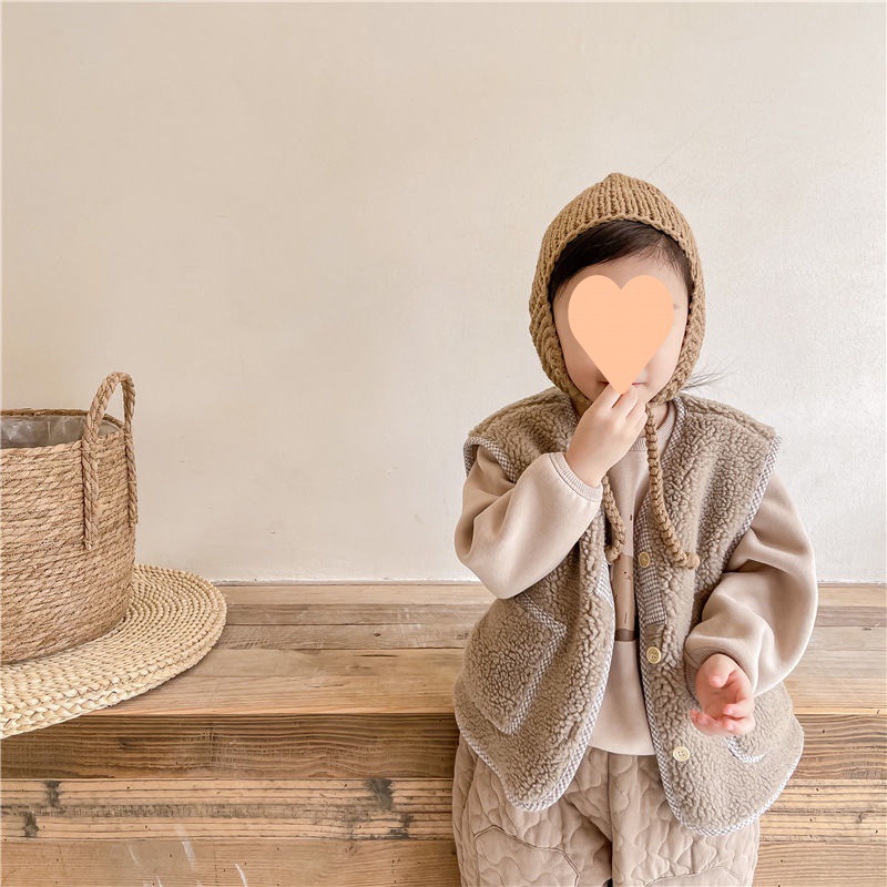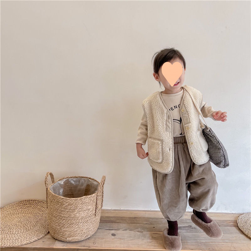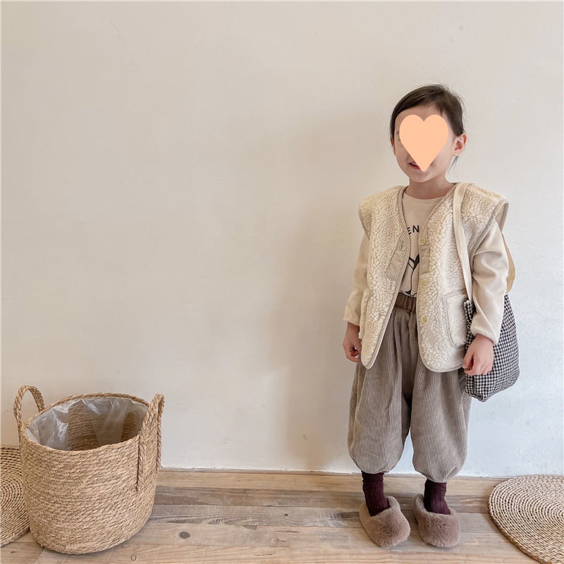 아동복 가을과 겨울 새로운 어린이 한국식 양고기 벨벳 기모 두꺼운 조끼 소년 소녀 아기 느슨한 겉옷