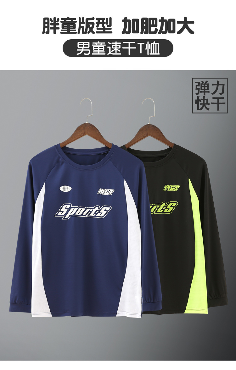 뚱뚱한 아동복 소년 플러스 지방 증가 긴 소매 티셔츠 봄과 가을 얇은 큰 어린이 소년 스포츠 속건 옷 머리카락 세대스토어 가기