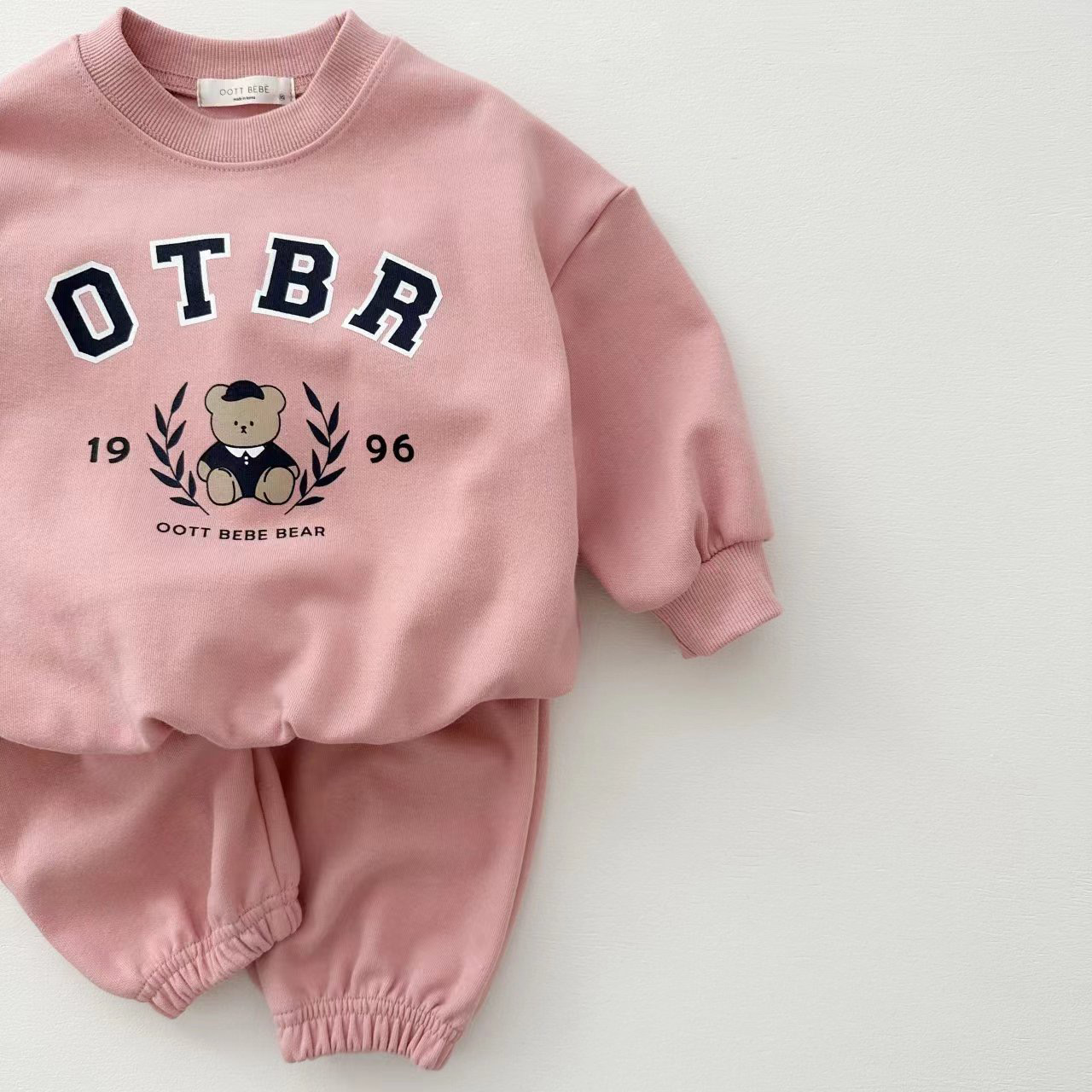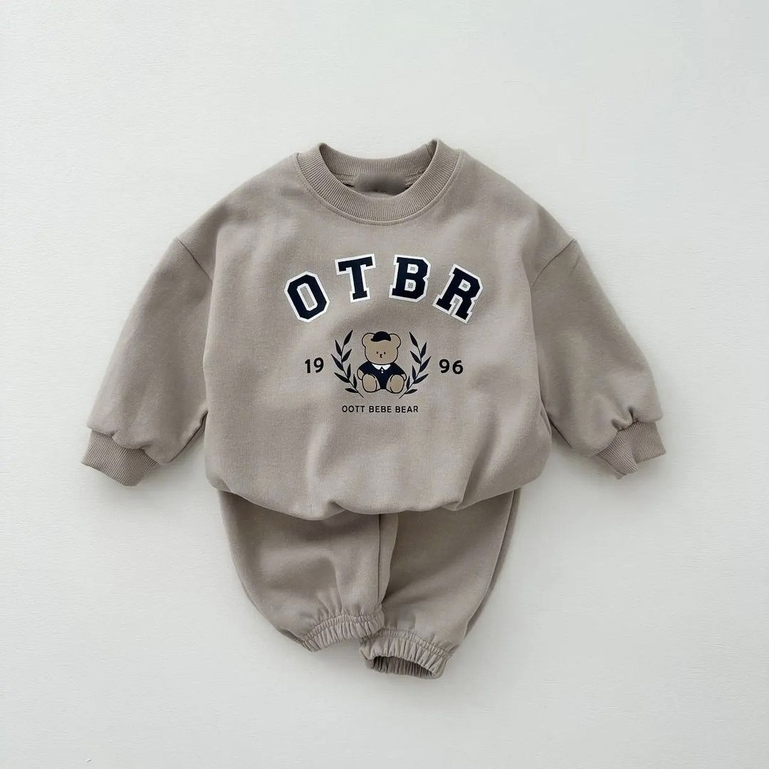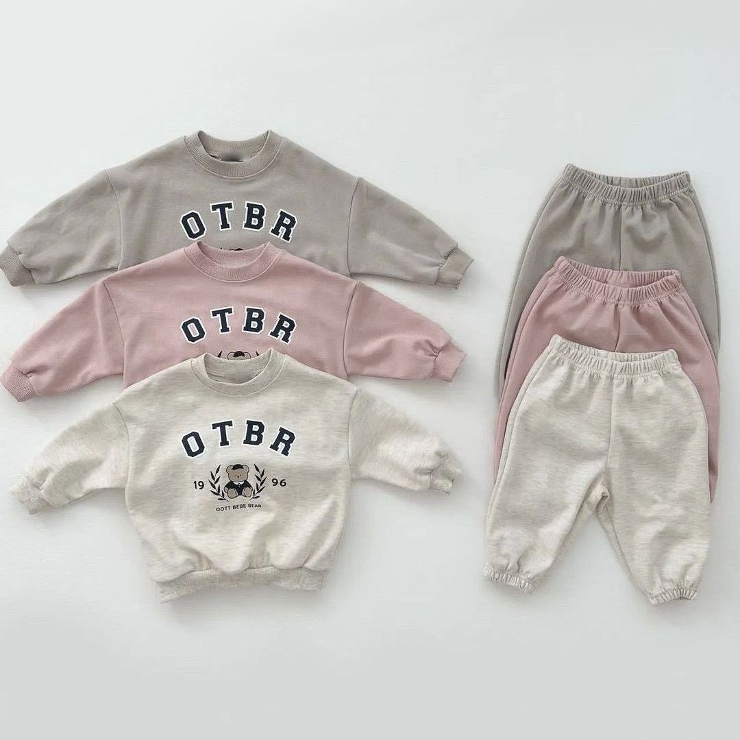 한국 스타일 봄 가을 신상 남녀 아기 면 세트 유아용 곰 프린트 긴팔 스웨트셔츠와 조거 팬츠 투피스 세트