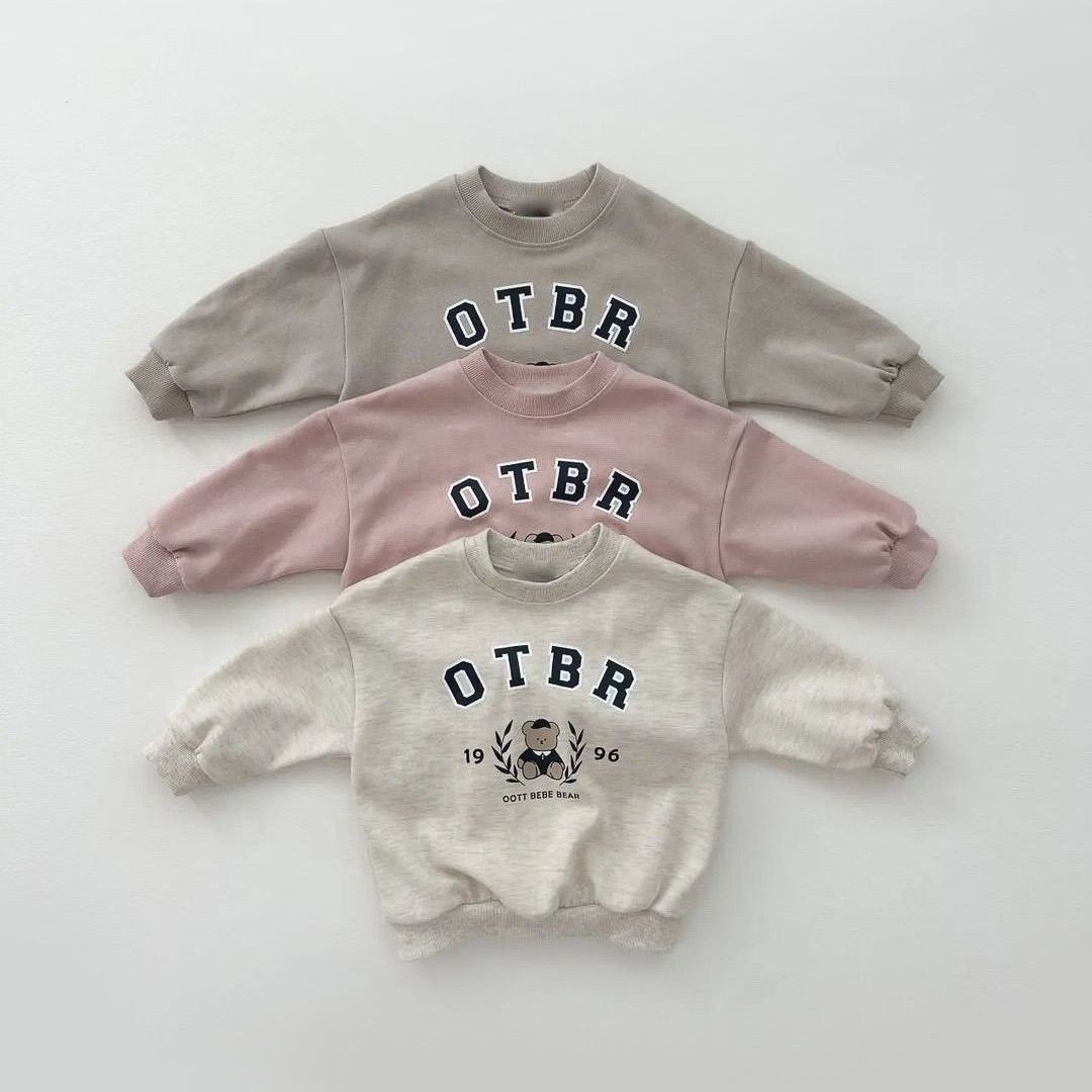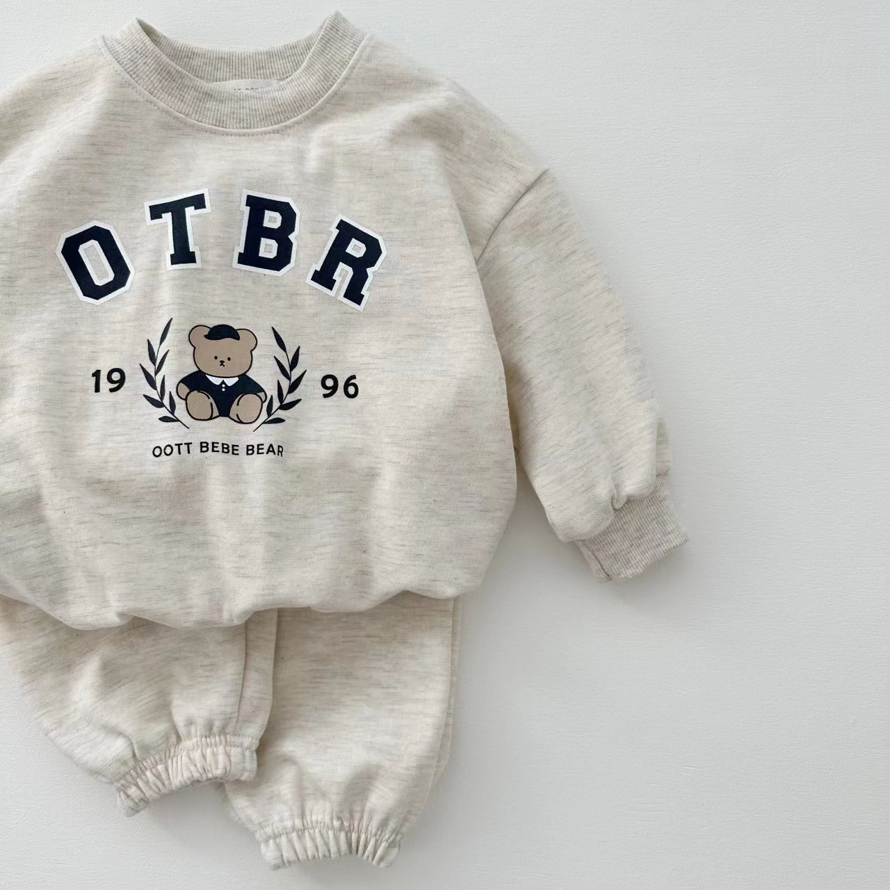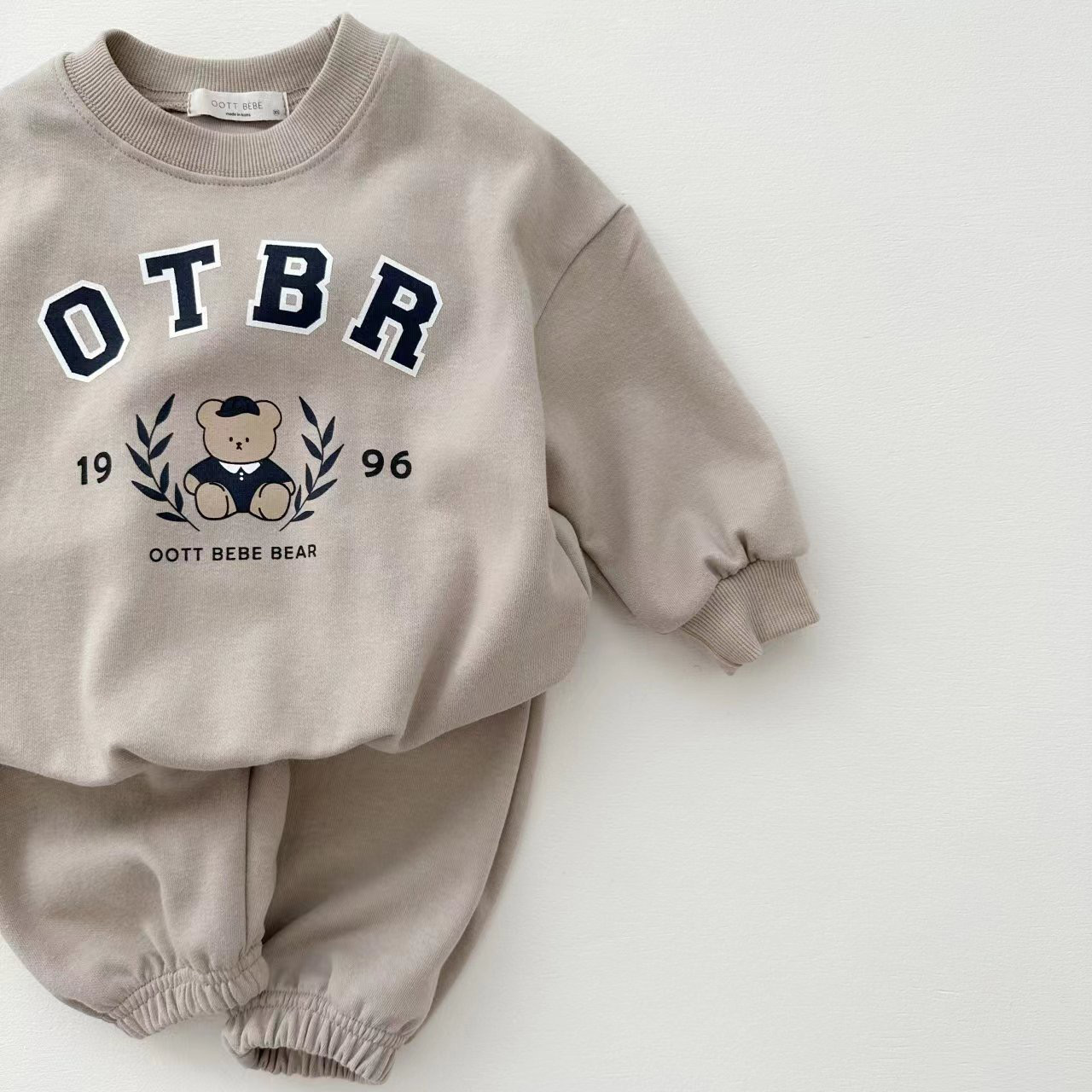 한국 스타일 봄 가을 신상 남녀 아기 면 세트 유아용 곰 프린트 긴팔 스웨트셔츠와 조거 팬츠 투피스 세트