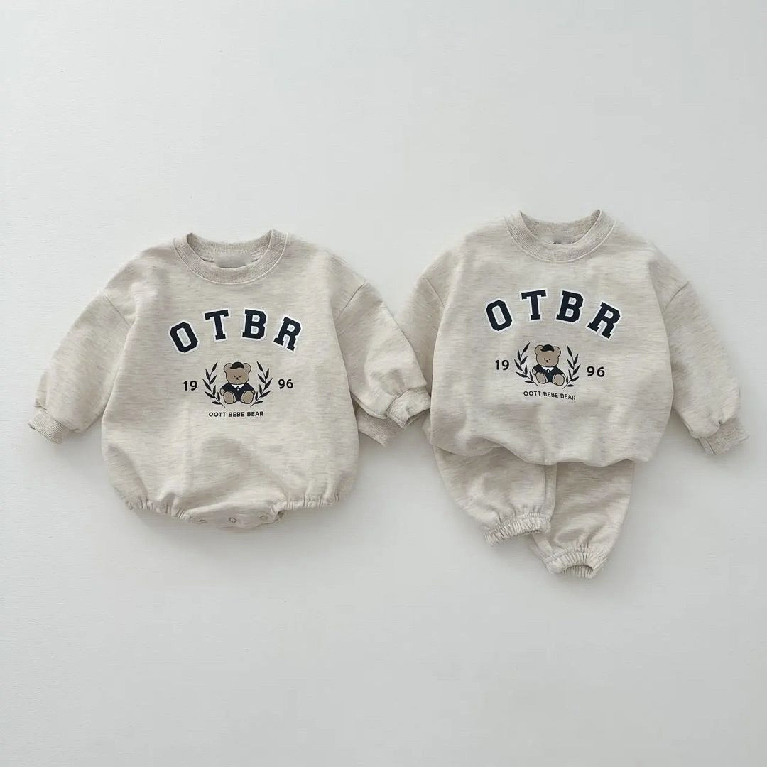 한국 스타일 봄 가을 신상 남녀 아기 면 세트 유아용 곰 프린트 긴팔 스웨트셔츠와 조거 팬츠 투피스 세트스토어 가기