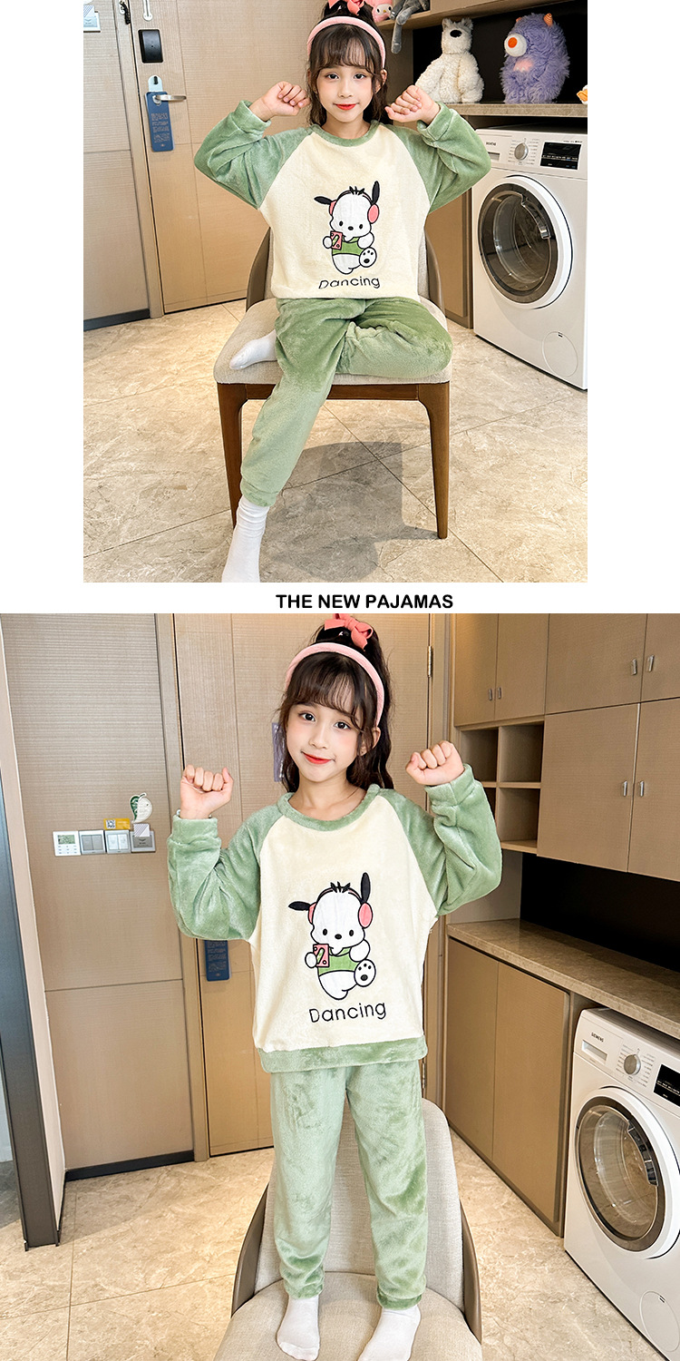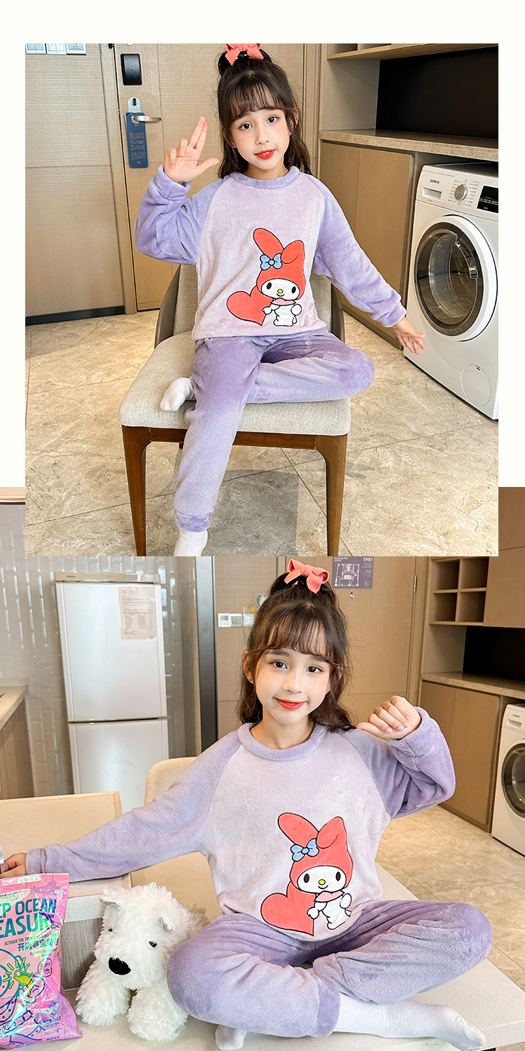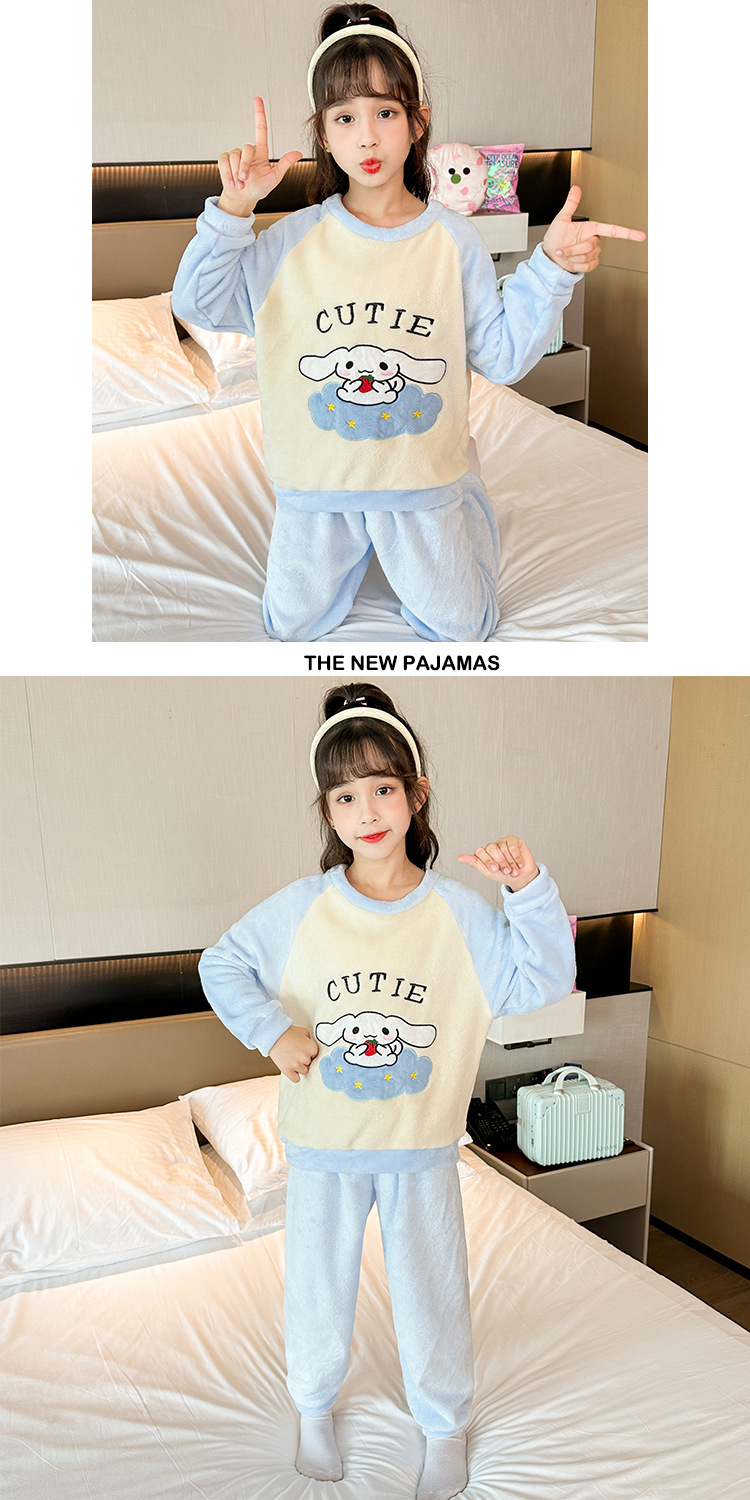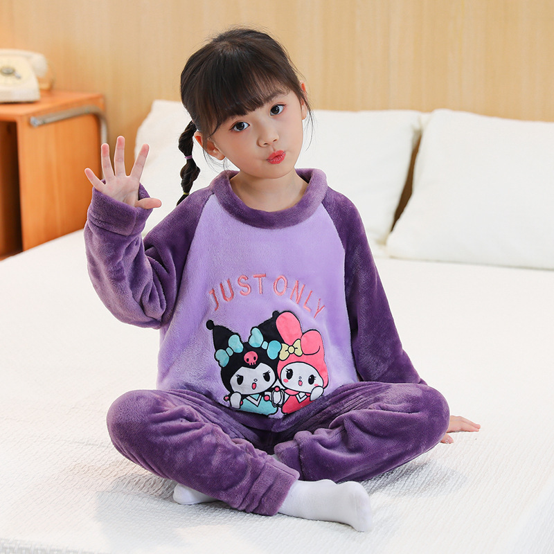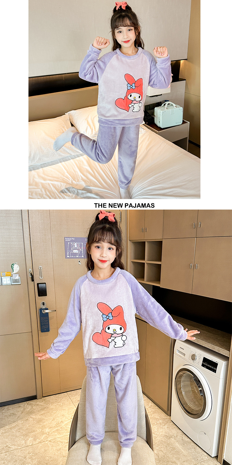 새로운 어린이 겨울 산호 양털 잠옷 여아 플란넬 따뜻한 만화 일본어 여아 가정복 세트스토어 가기