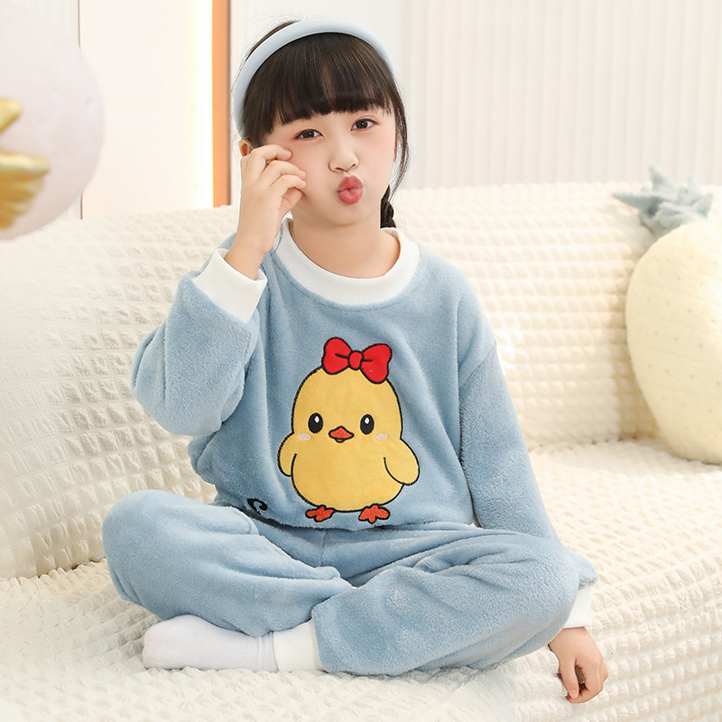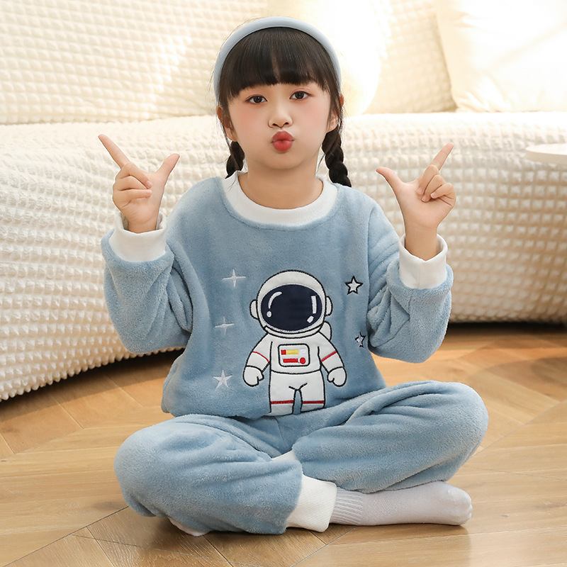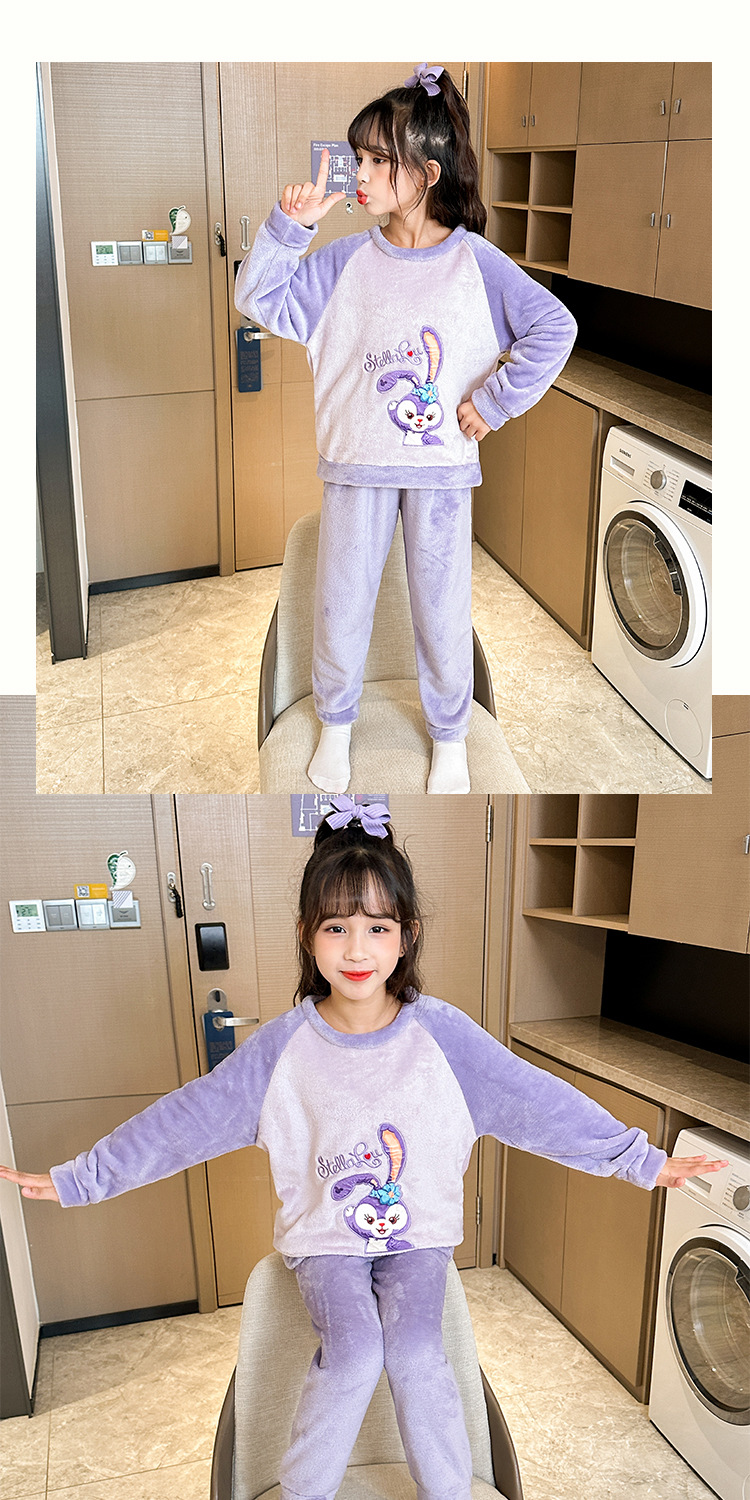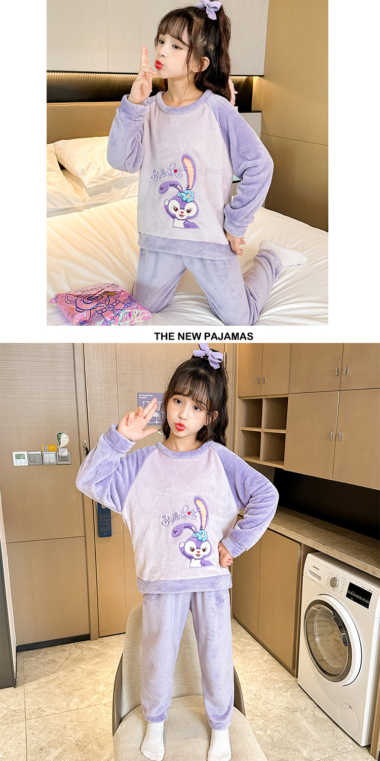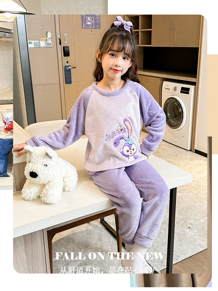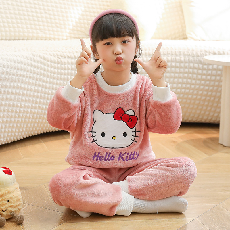 새로운 어린이 겨울 산호 양털 잠옷 여아 플란넬 따뜻한 만화 일본어 여아 가정복 세트스토어 가기