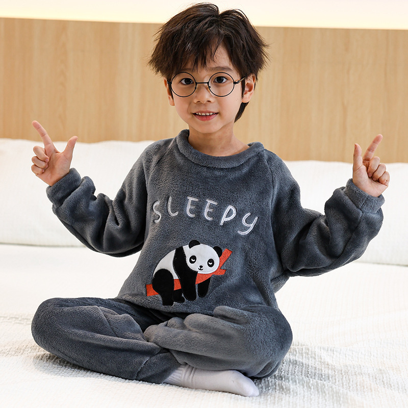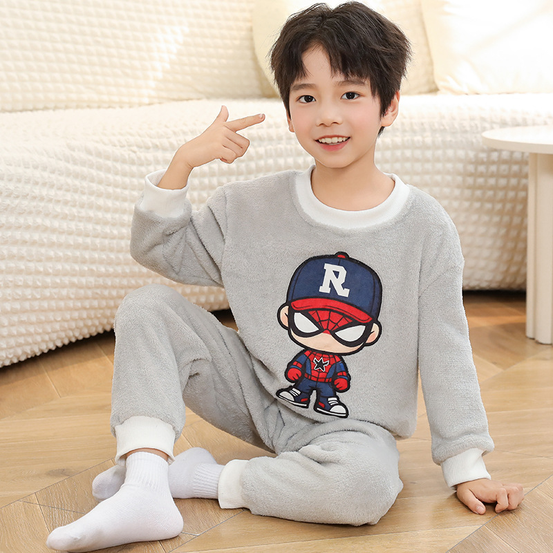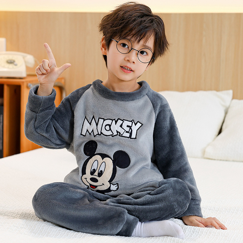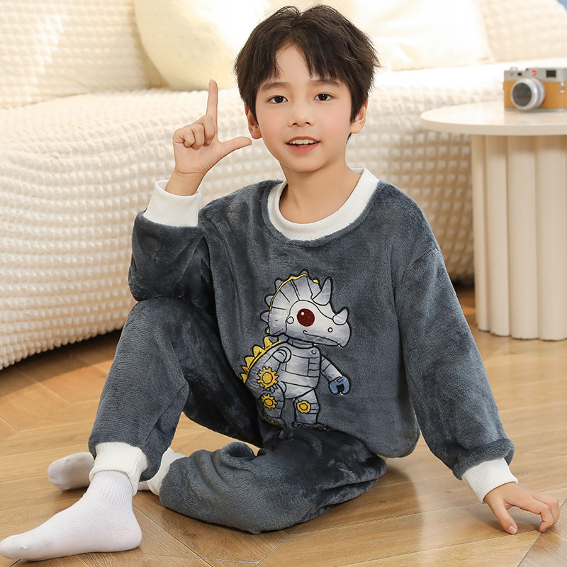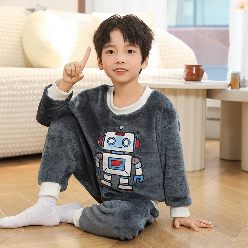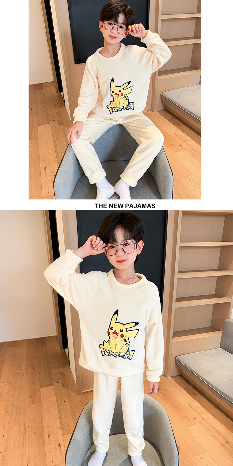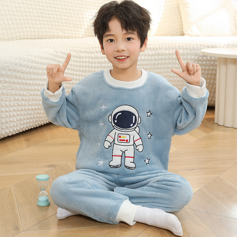 새로운 어린이 겨울 산호 양털 잠옷 여아 플란넬 따뜻한 만화 일본어 여아 가정복 세트스토어 가기