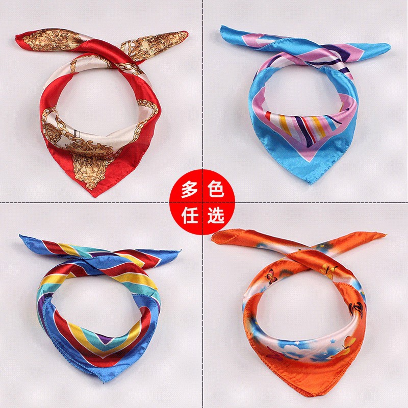 다양한 마법의 캔디 컬러 실크 스카프 선물용 작은 사각 스카프, 스튜어디스 및 호텔용 표준 작은 사각 스카프 50*50스토어 가기