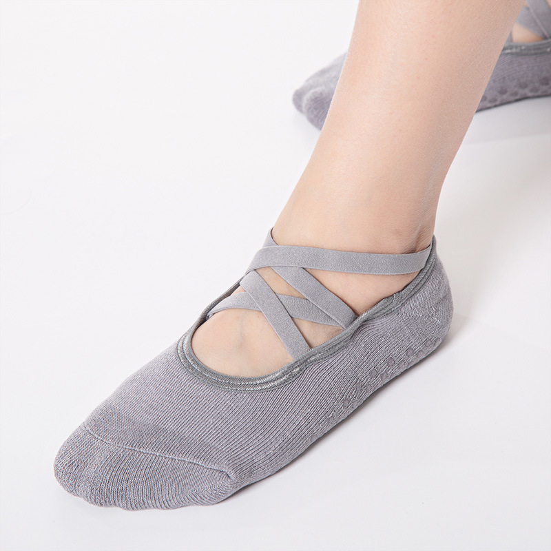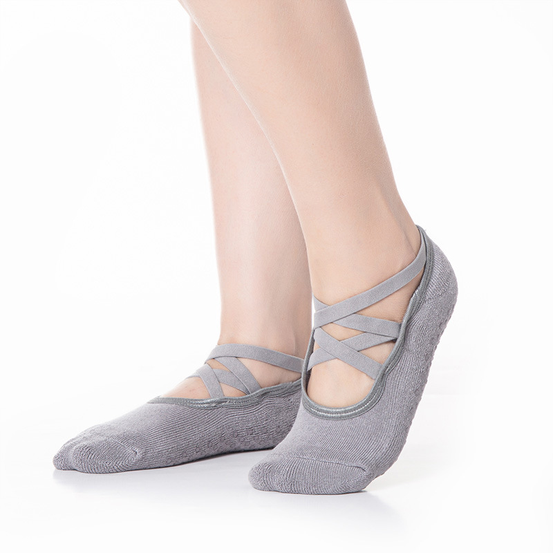 더블 얇은 크로스 두꺼운 테리 요가 양말 여성 미끄럼 방지 스포츠 보이지 않는 보트 양말 트램폴린 필라테스 아마존