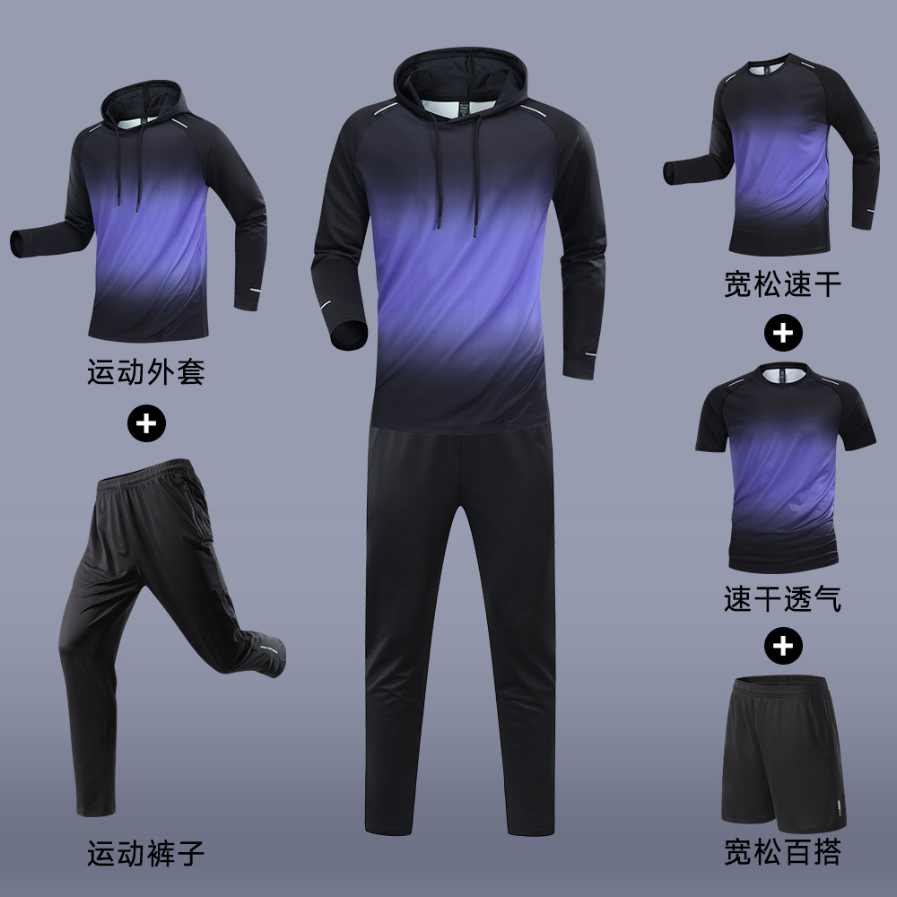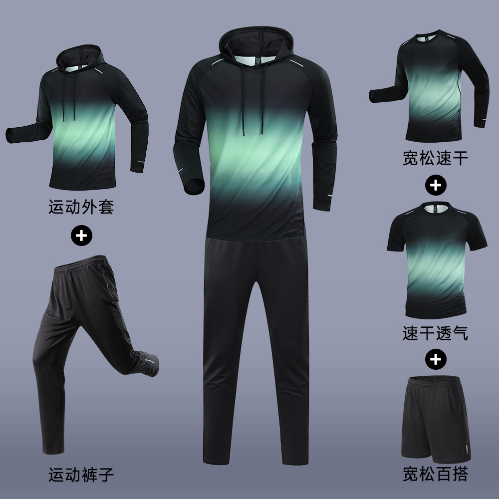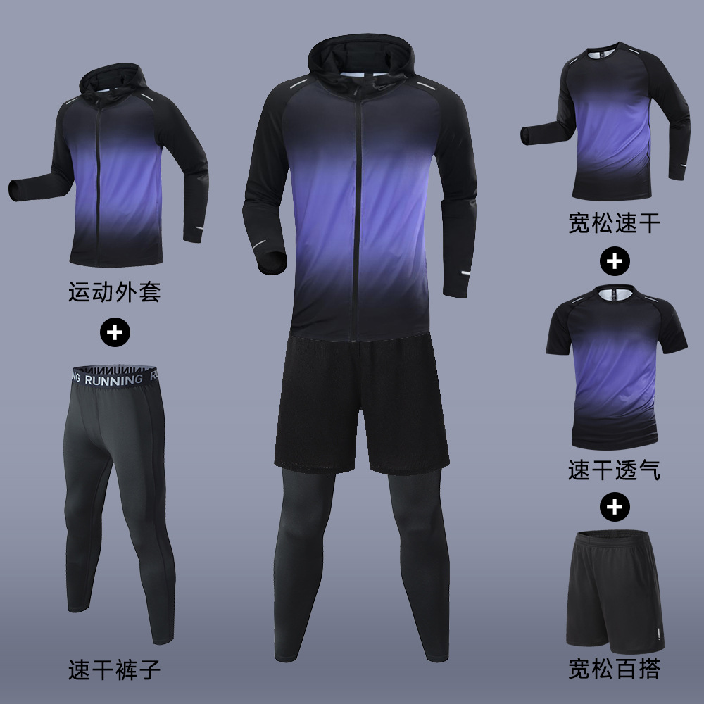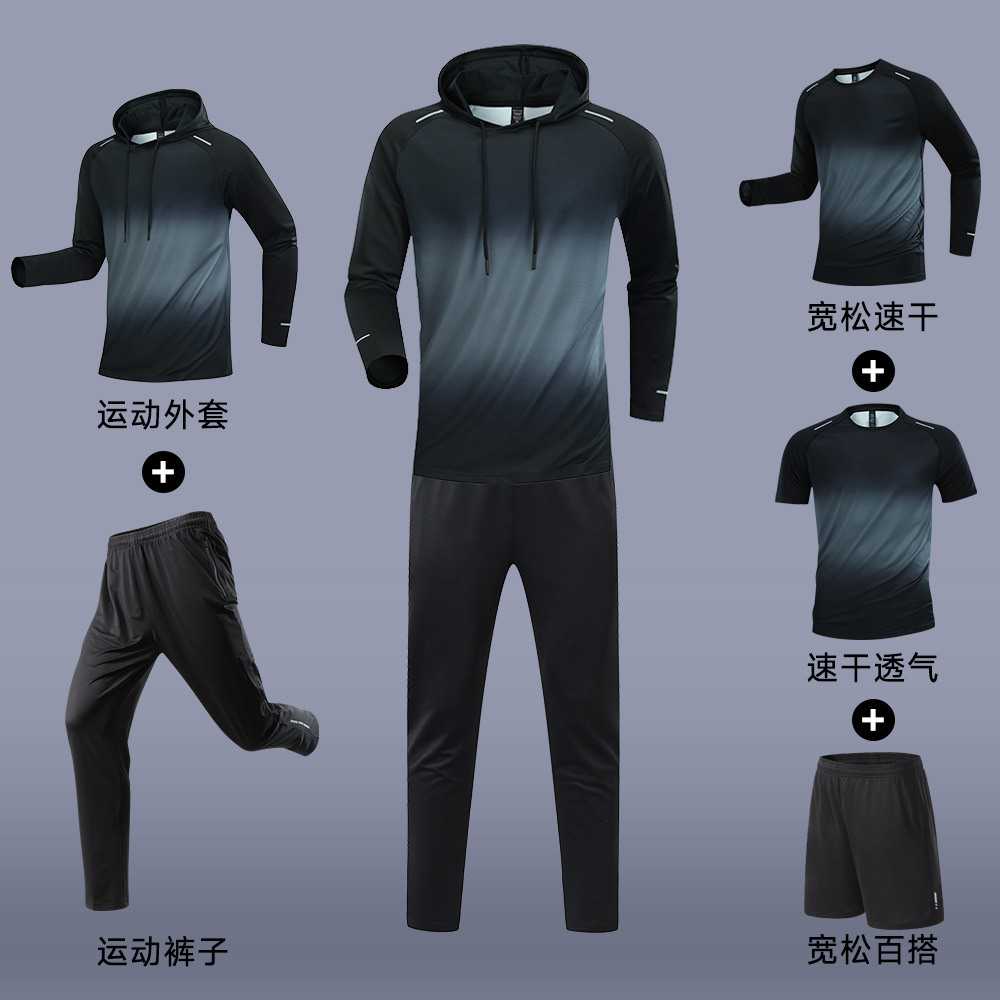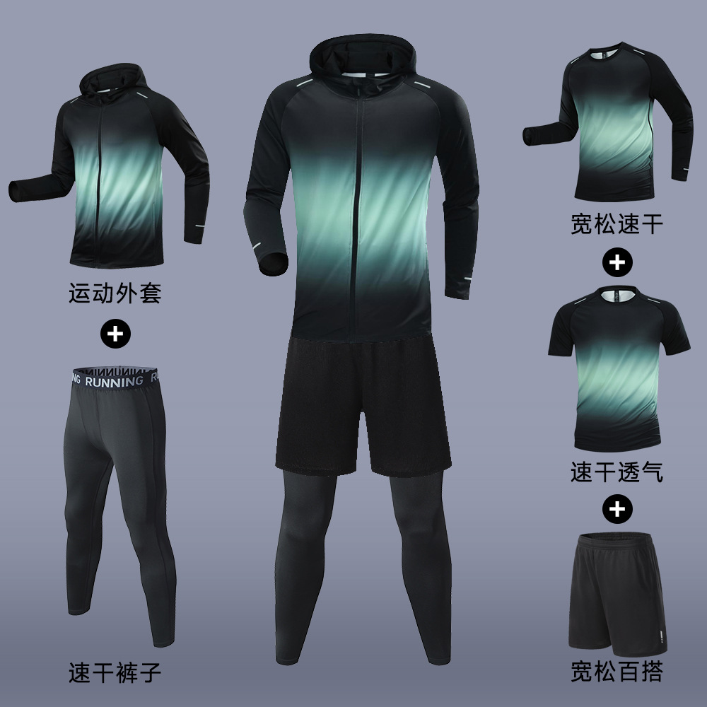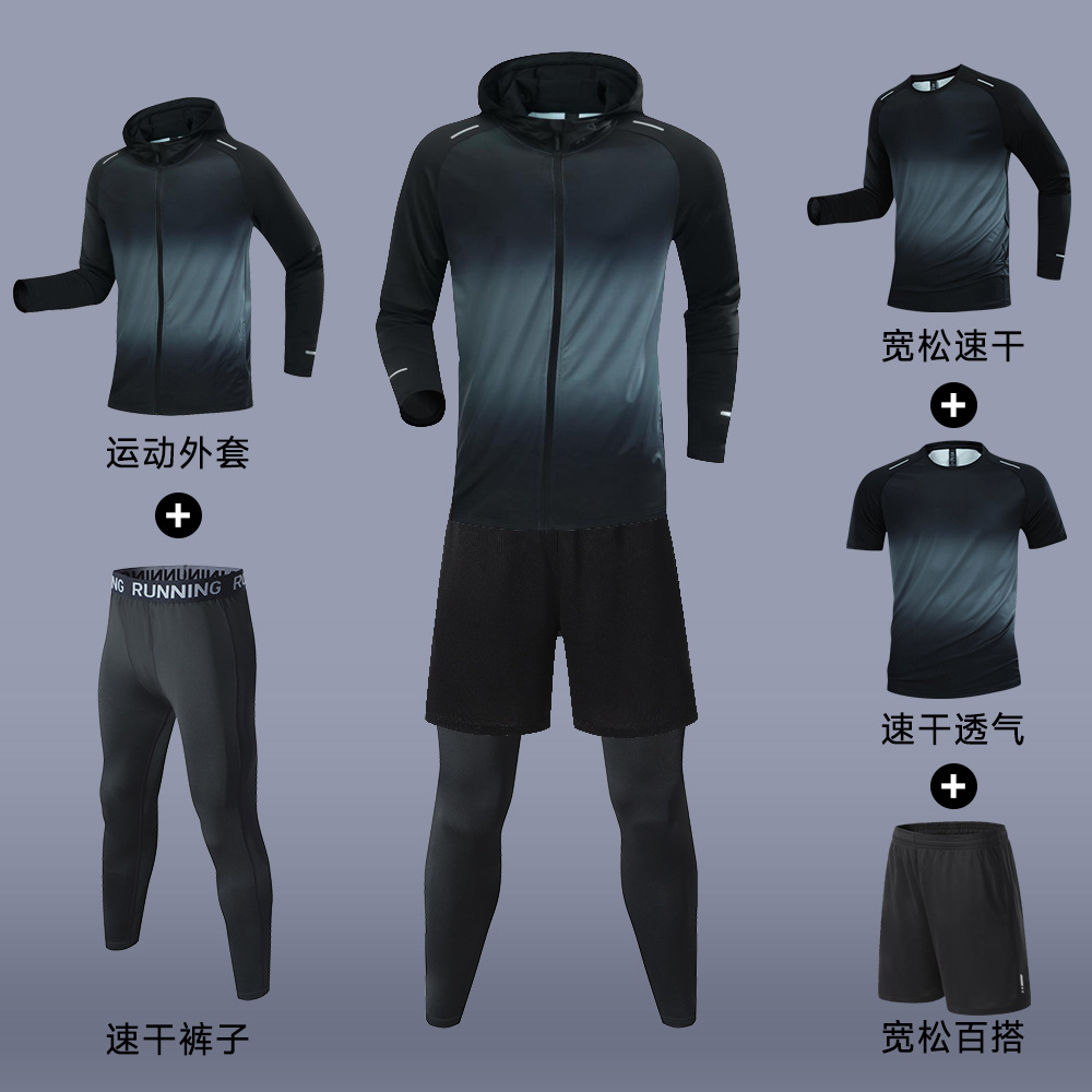 运动套装男健身衣服五件套跑步装备速干篮球冰丝骑行服紧身衣批发