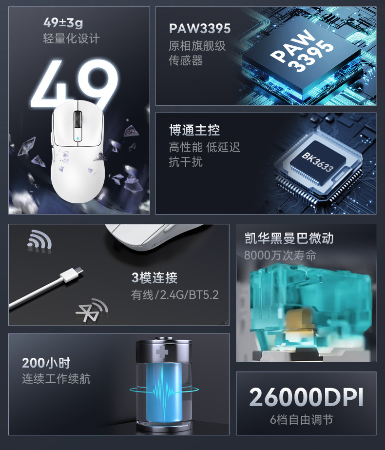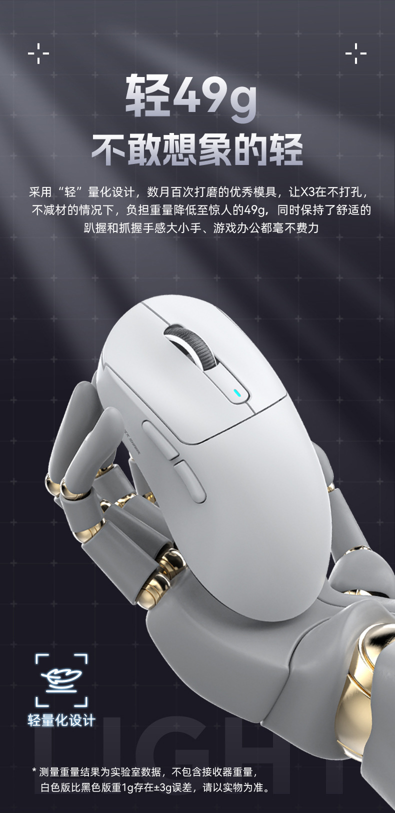 鼠标重量:49G+—3G