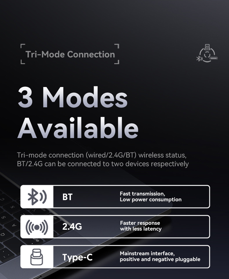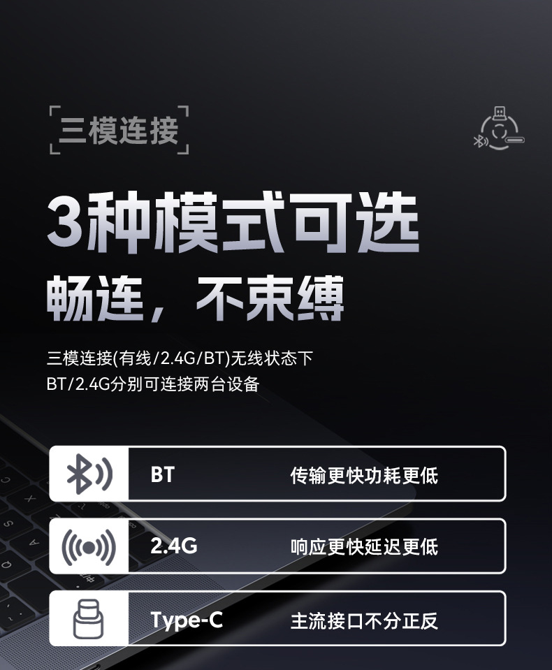 连接方式:2.4G无线+蓝牙5.2+TYPE-C有线