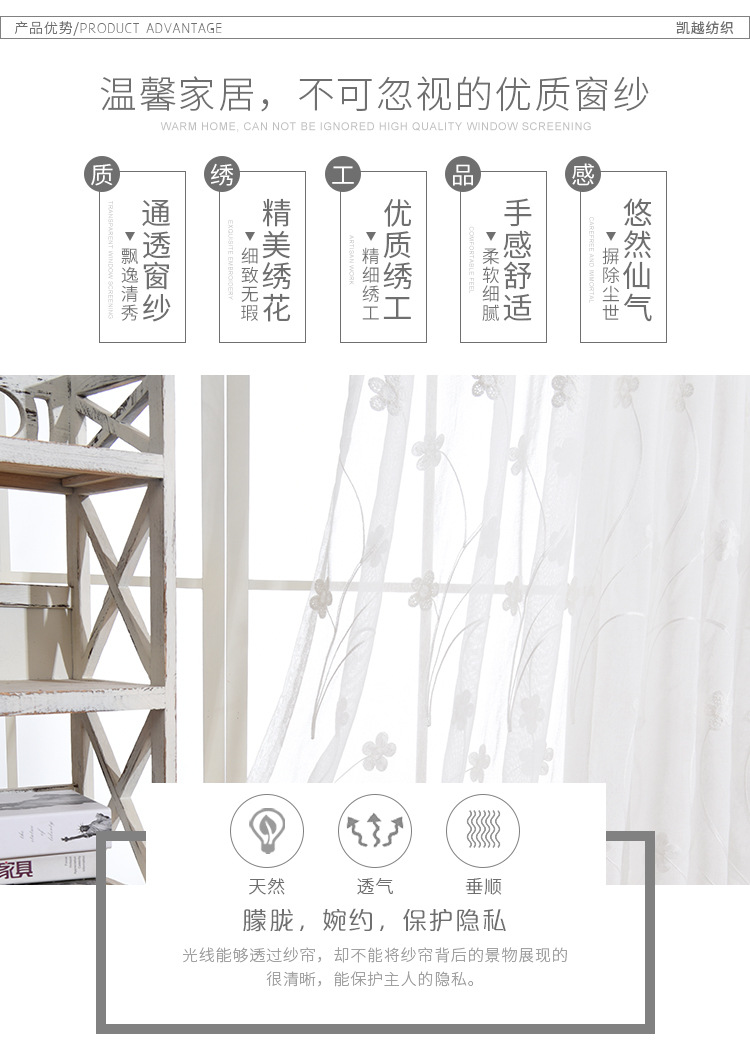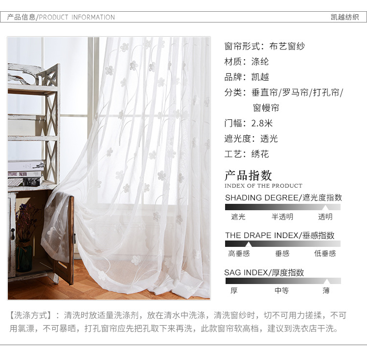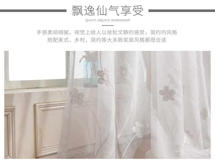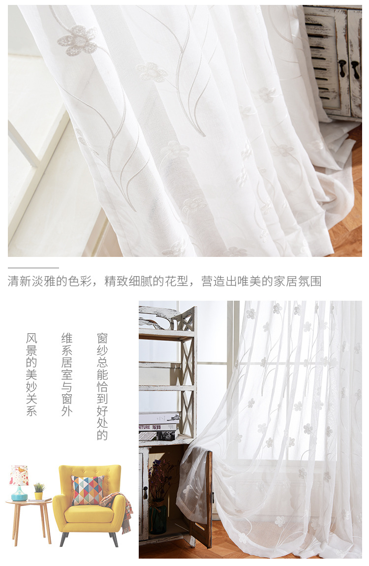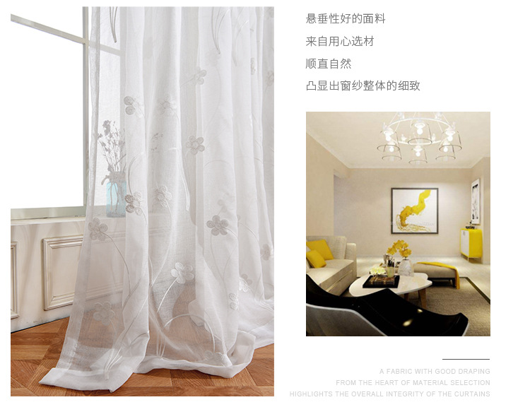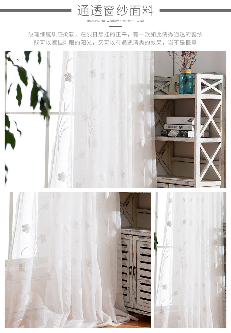 [작은 매화] 반투명 간단한 흰색 자수 면 린넨 창 화면 도매 거실 침실 발코니 베이 창 화면