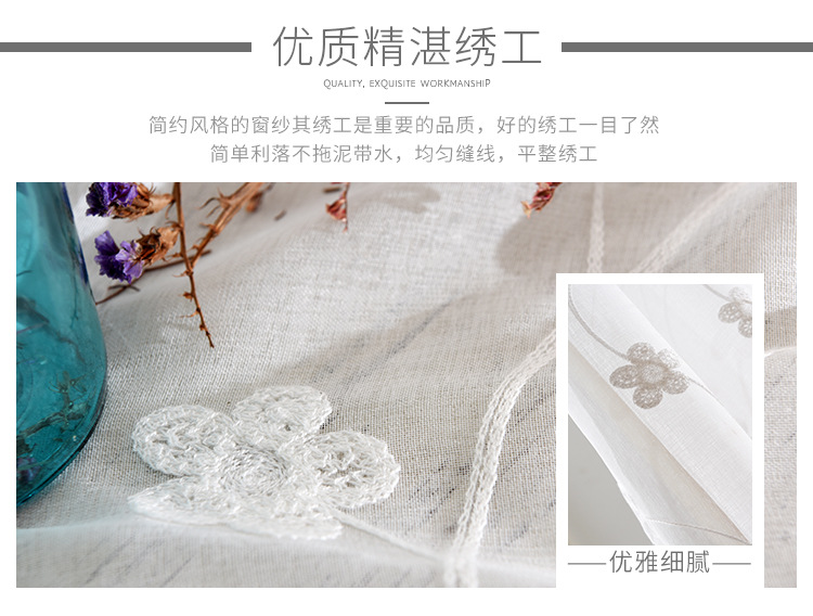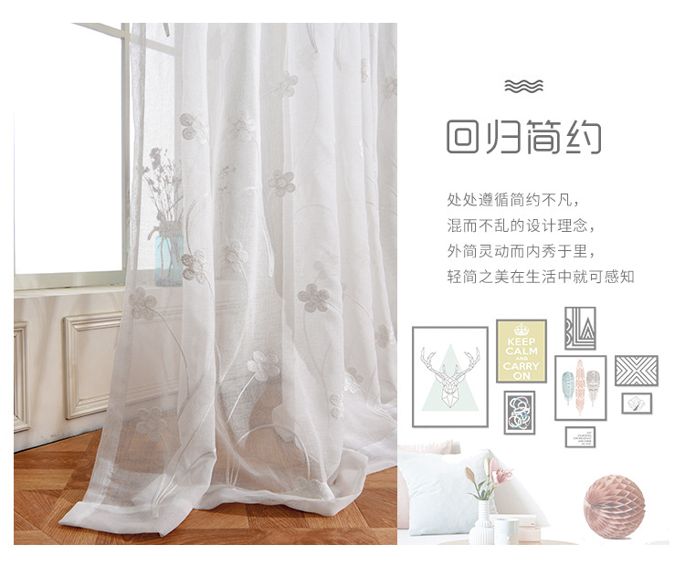 [작은 매화] 반투명 간단한 흰색 자수 면 린넨 창 화면 도매 거실 침실 발코니 베이 창 화면스토어 가기