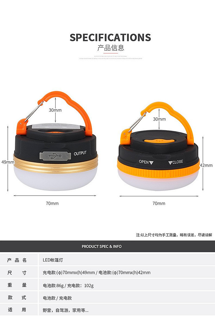 크로스 보더 야외 LED 캠핑 라이트 USB 충전식 비상등 자석 흡착 교수형 조명 방수 캠핑 조명