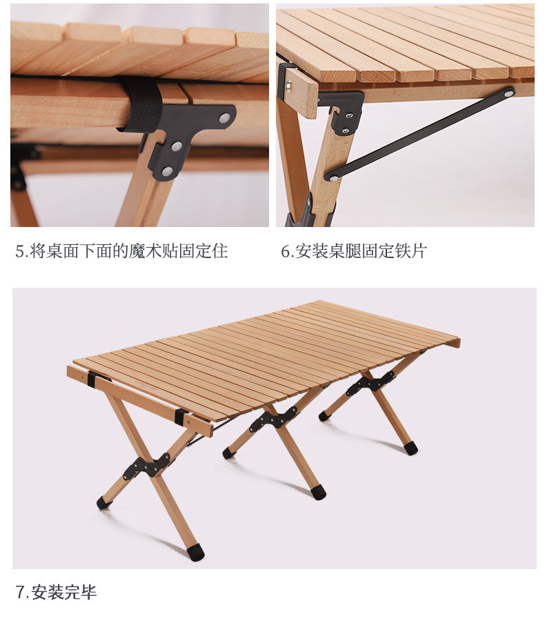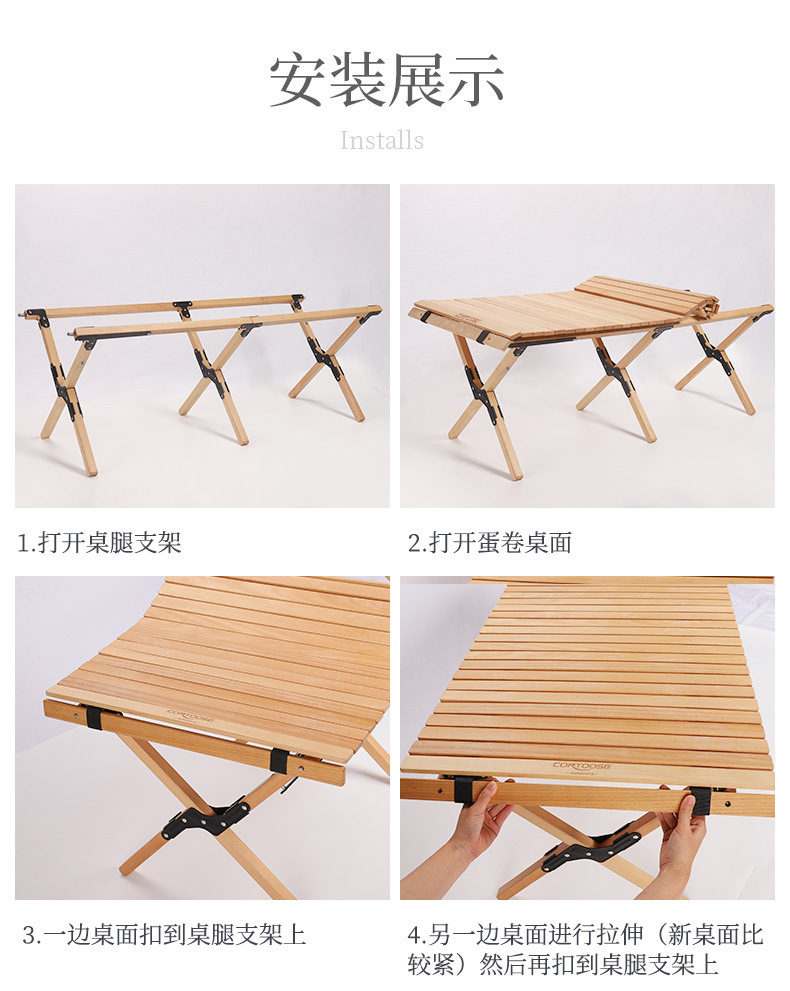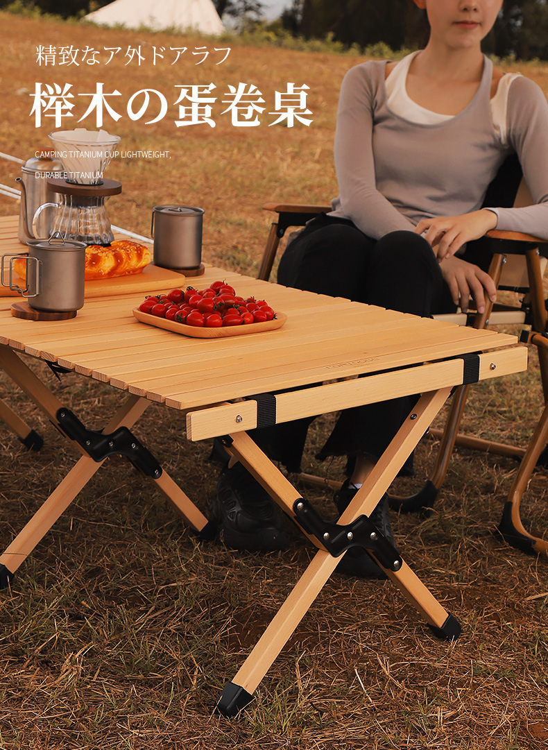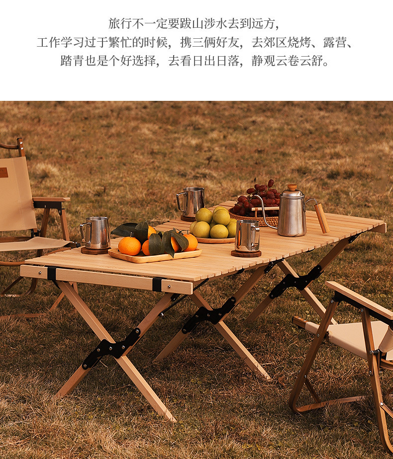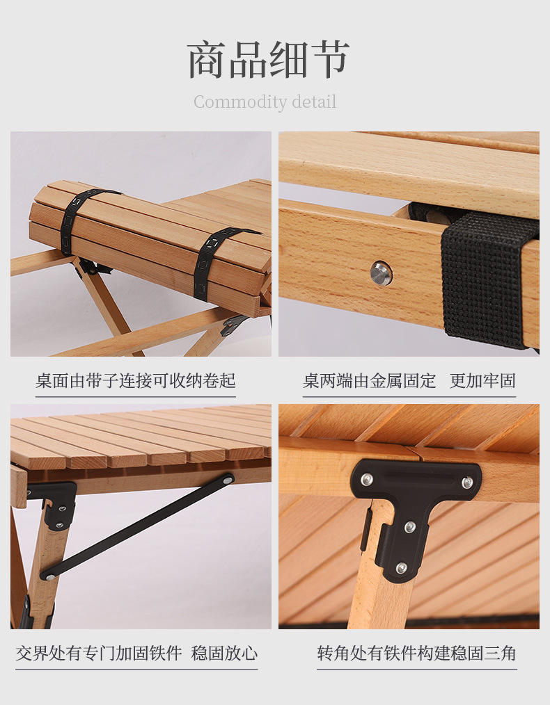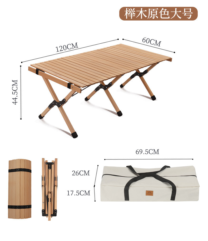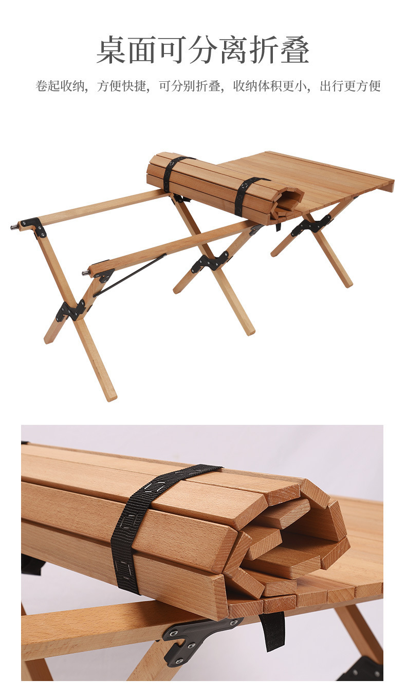 야외 너도밤 나무 계란 롤 테이블 캠핑 접이식 테이블과 의자 휴대용 캠핑 장비 바베큐 피크닉 단단한 나무 테이블 홈