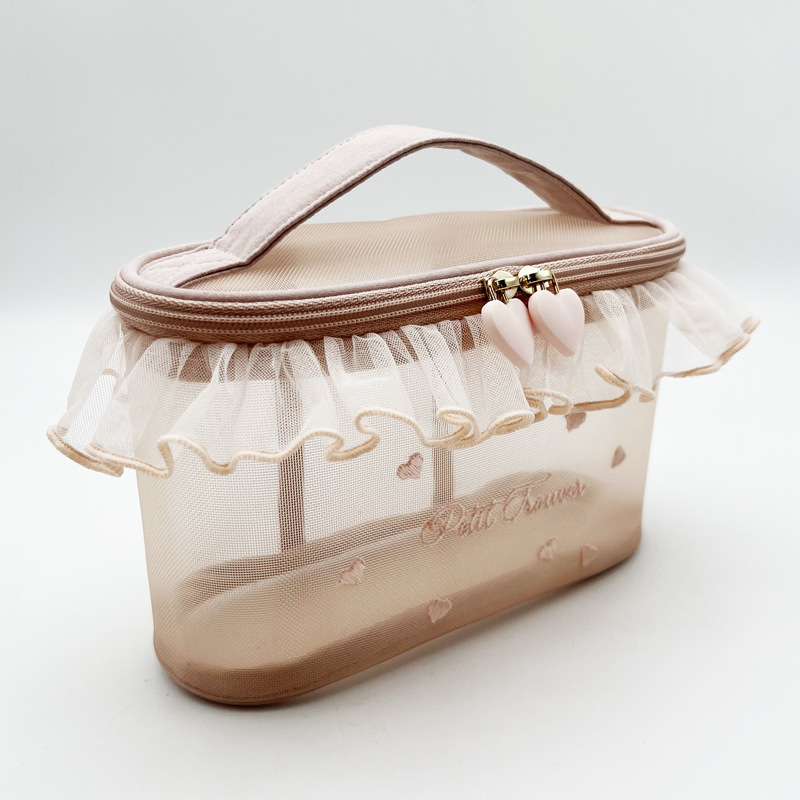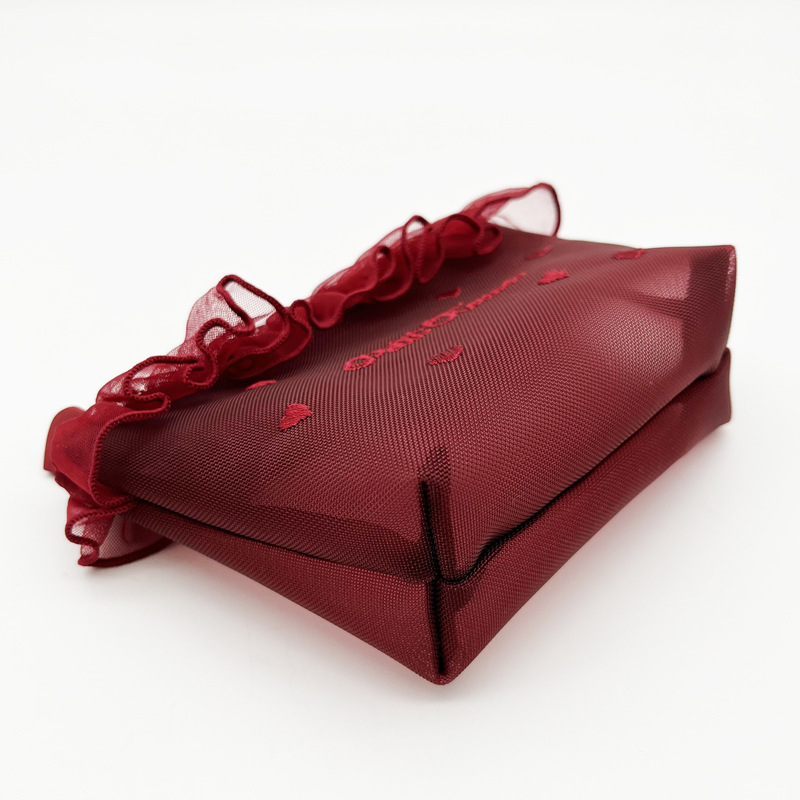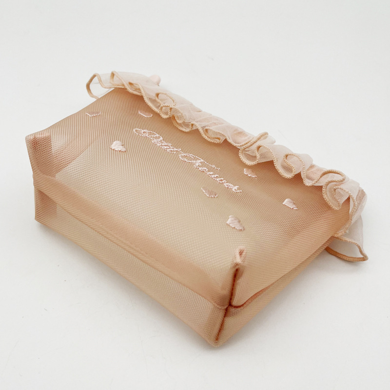 쁘띠 트루버 메쉬 사랑 자수 레이스 휴대용 화장품 가방 귀여운 티슈 가방 메이크업 보관 가방