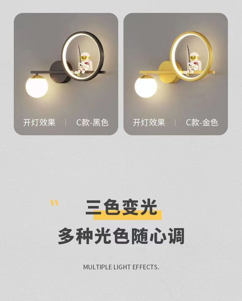 창조적 인 우주 비행사 어린이 방 벽 램프 led 침대 옆 벽 램프 결혼식 방 장식 거실 배경 벽 램프
