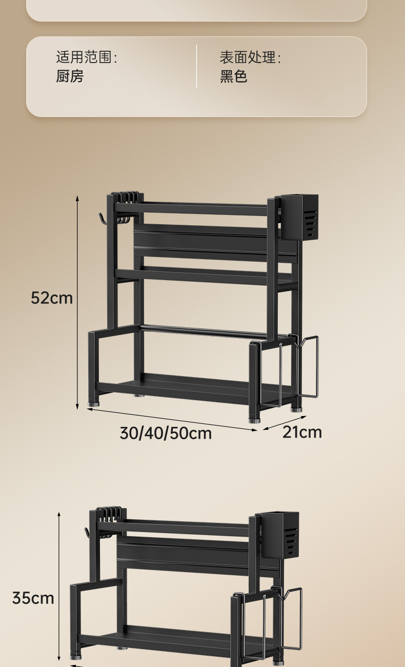 • 40cm 2 층 [풀 매치: 젓가락 튜브 + 훅 + 냄비 커버 랙]