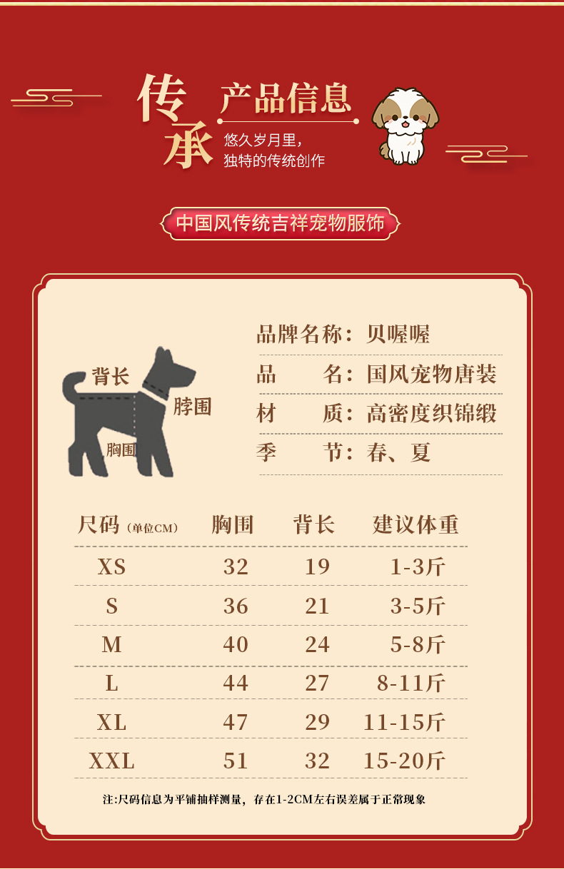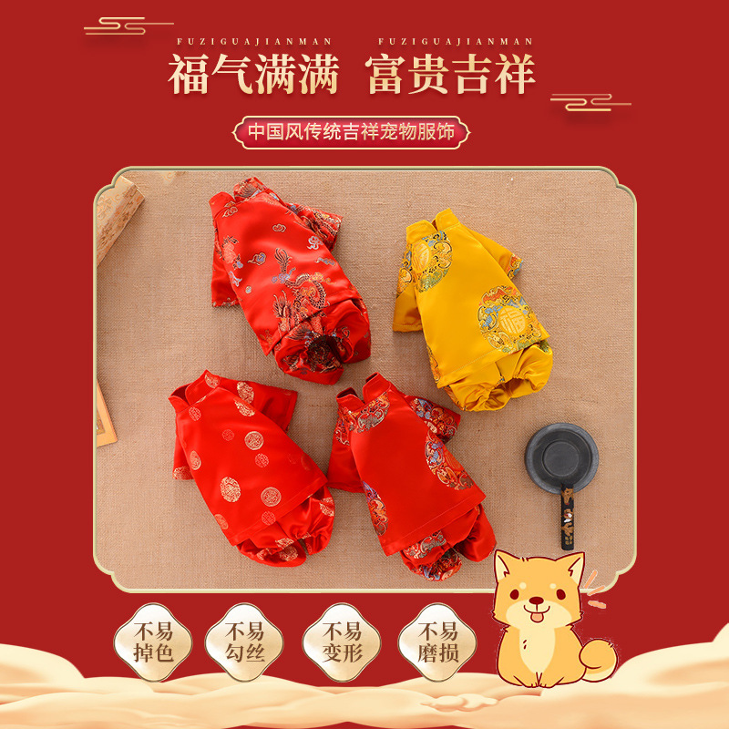 개 탕 세트 봄과 여름 얇은 애완 동물 옷 테디 쓴 곰 새해 전날 봄 축제 원피스 고양이 중국 한 옷스토어 가기