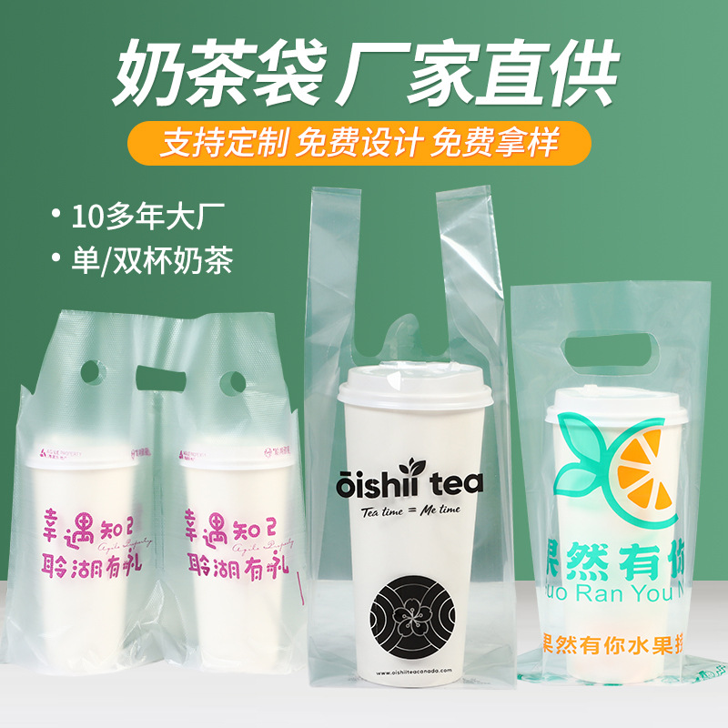 투명 우유 티백 일회용 식품 포장 가방 두꺼운 테이크 아웃 음료 커피 싱글 더블 컵 휴대용 비닐 봉투스토어 가기