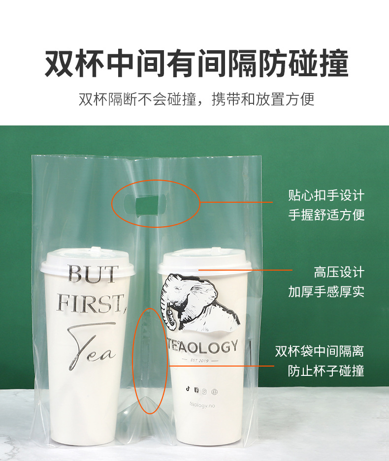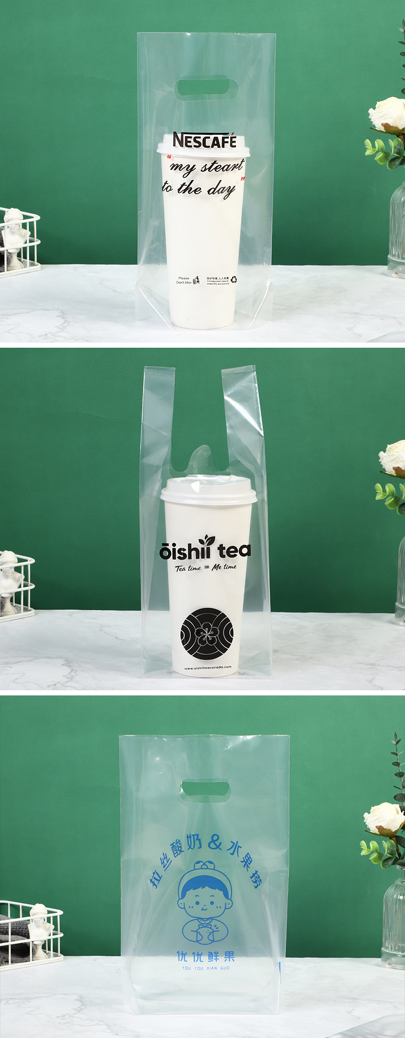 투명 우유 티백 일회용 식품 포장 가방 두꺼운 테이크 아웃 음료 커피 싱글 더블 컵 휴대용 비닐 봉투
