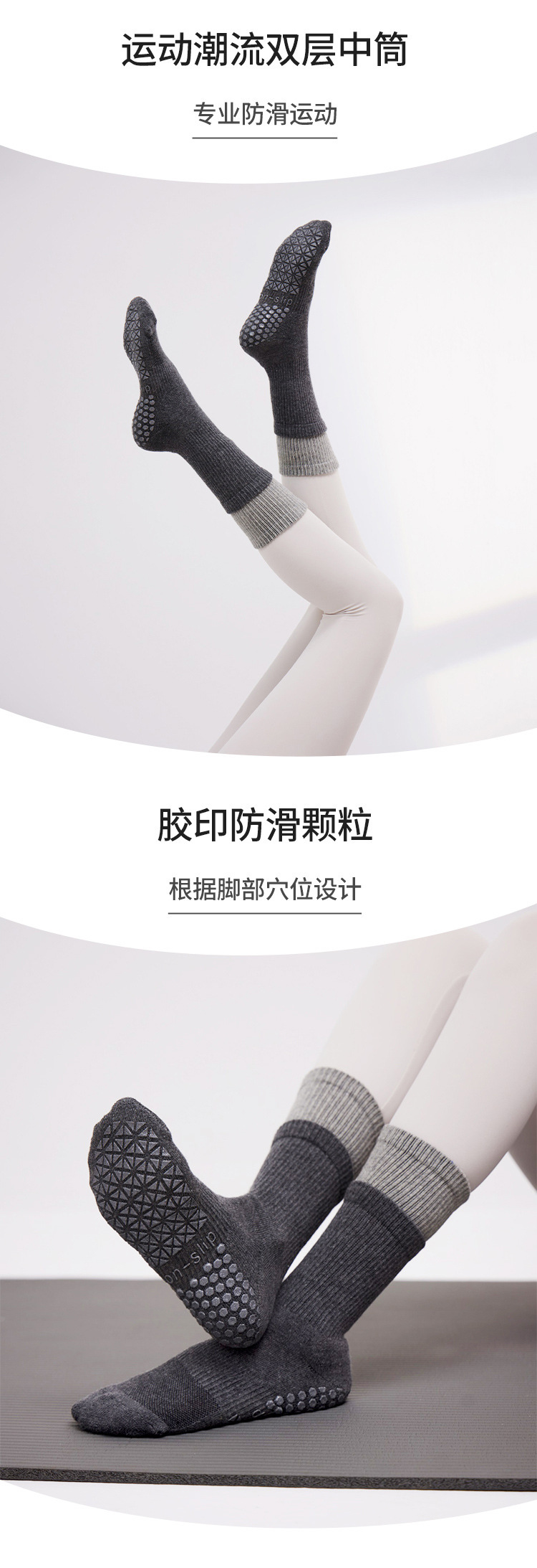 25종 신상 이중 레이어 중간 길이 봄 가을 요가 양말 미끄럼 방지 양말 긴 필라테스 양말 스포츠 양말 피트니스 두꺼운 양말스토어 가기