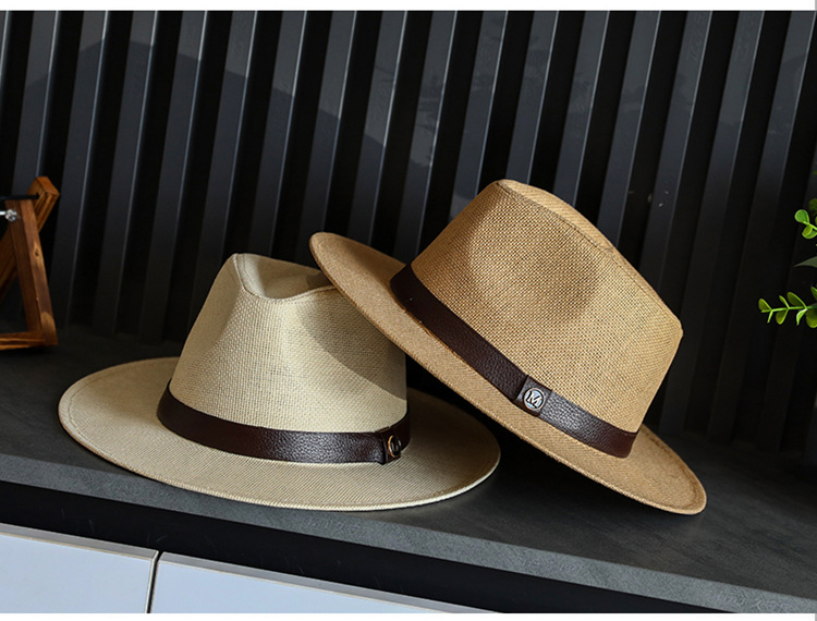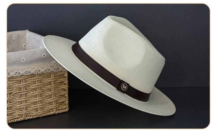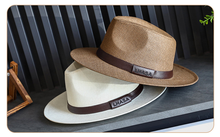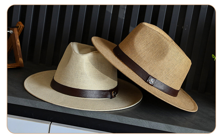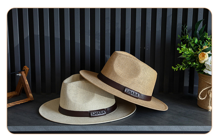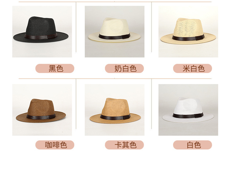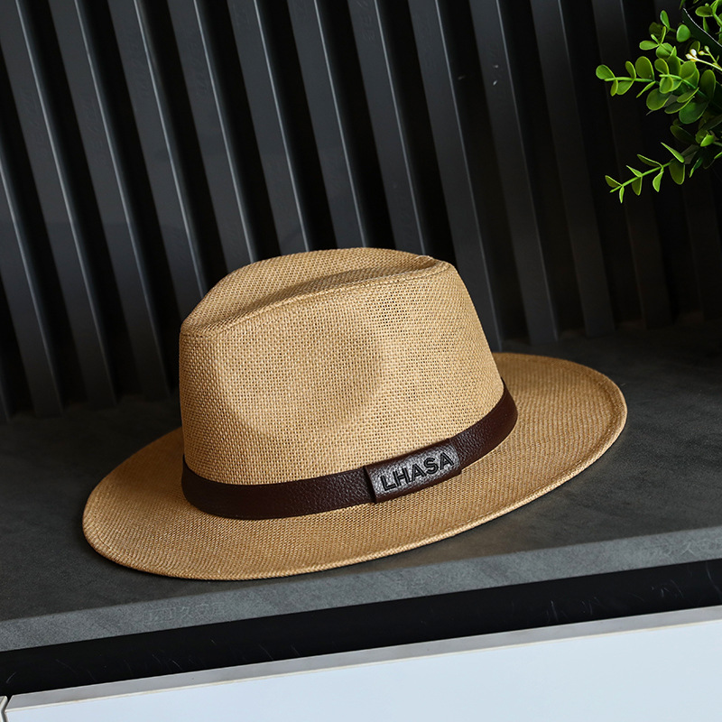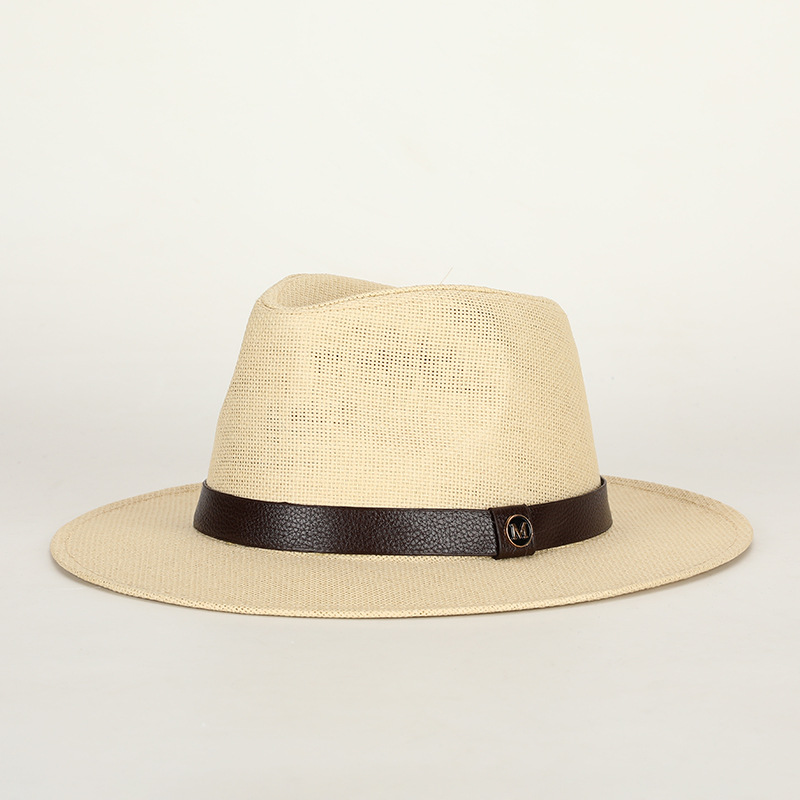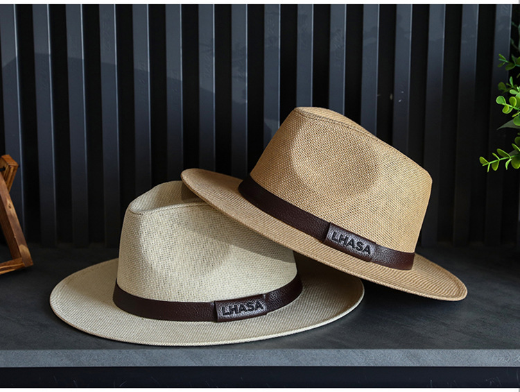봄과 여름 새로운 탑 햇 크로스 보더 파나마 영국 밀짚 태양 보호 태양 모자 남성용 벨트 종이 밀짚 비치 모자