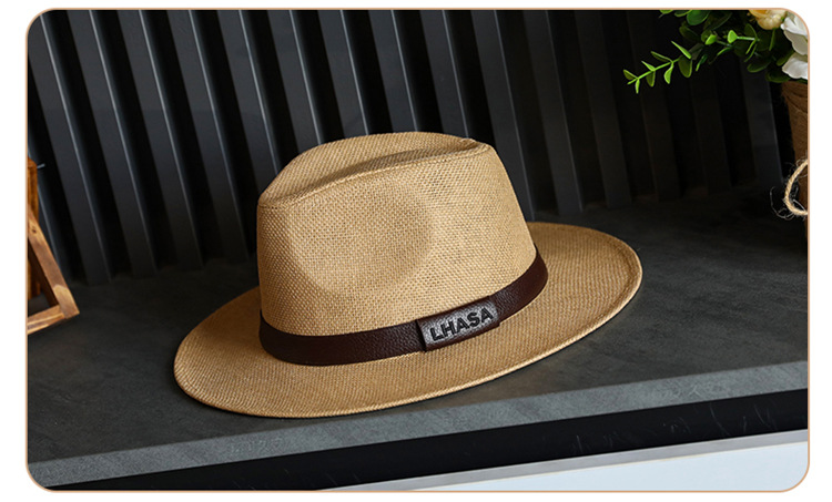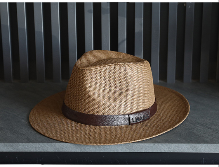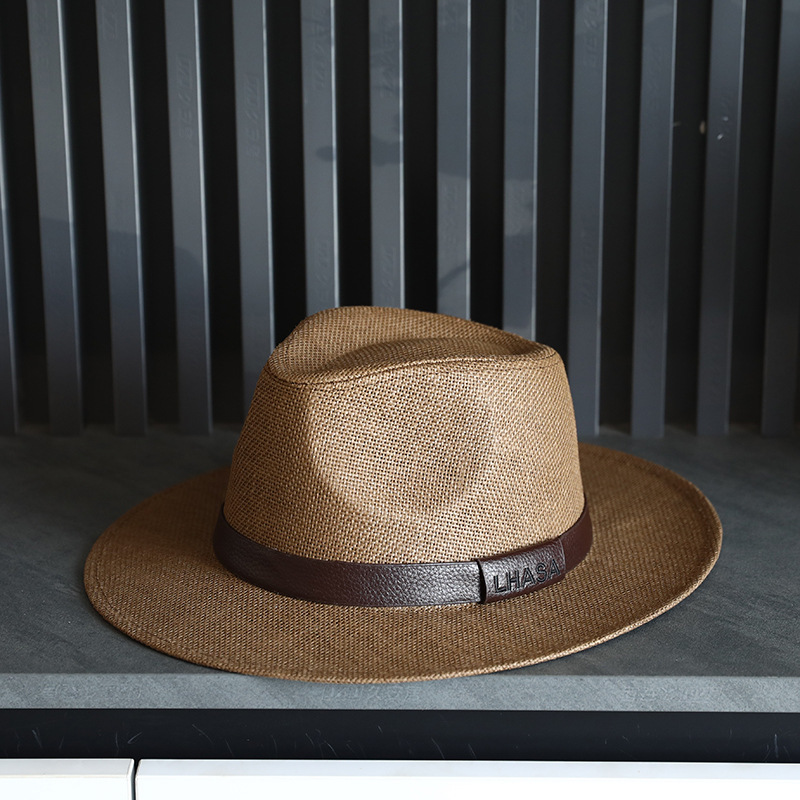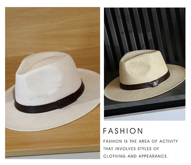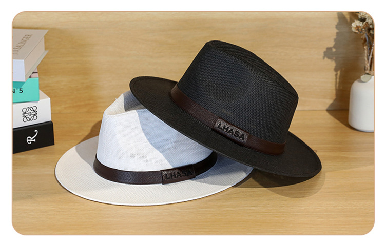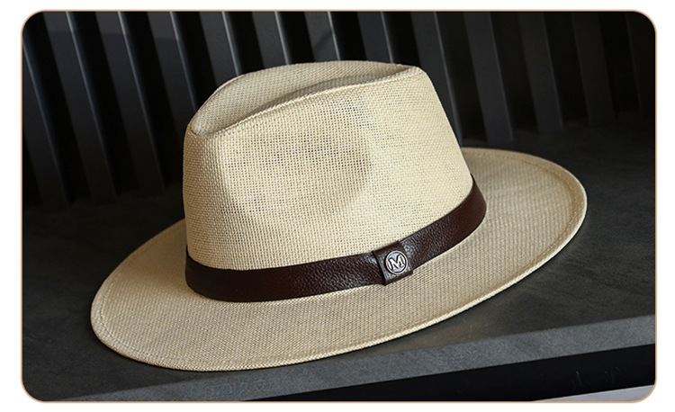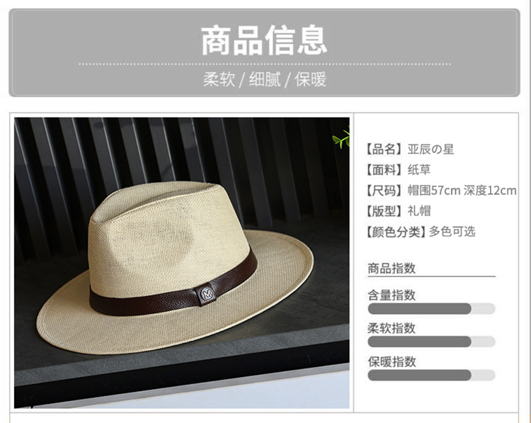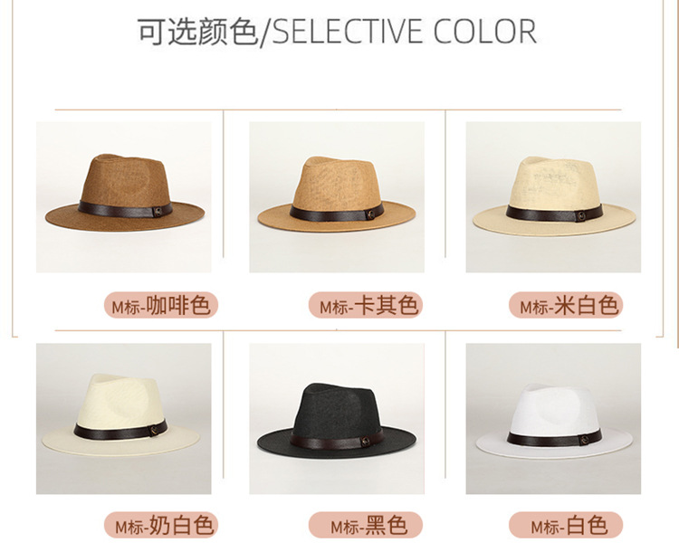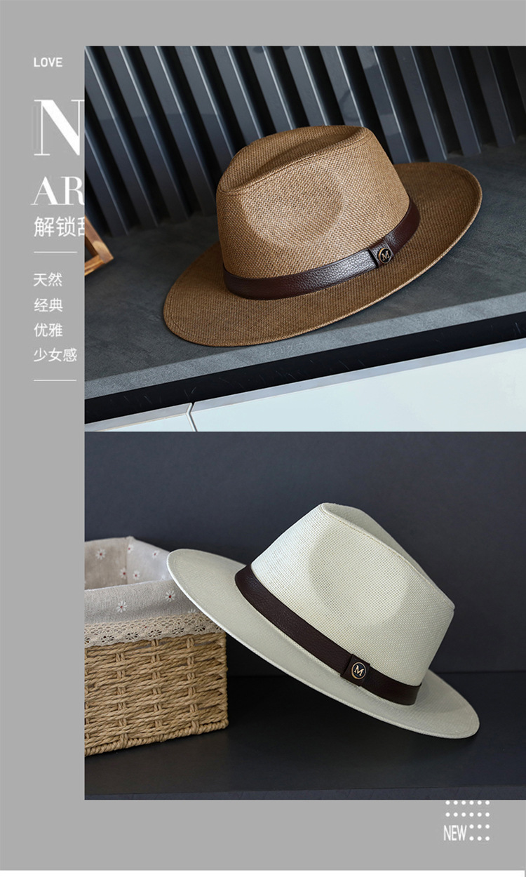 봄과 여름 새로운 탑 햇 크로스 보더 파나마 영국 밀짚 태양 보호 태양 모자 남성용 벨트 종이 밀짚 비치 모자