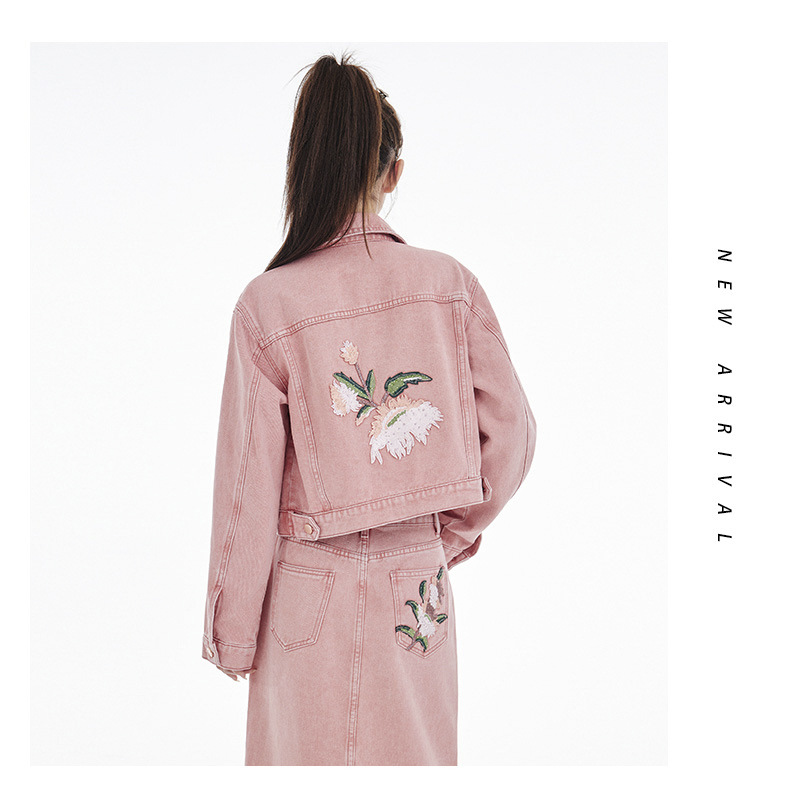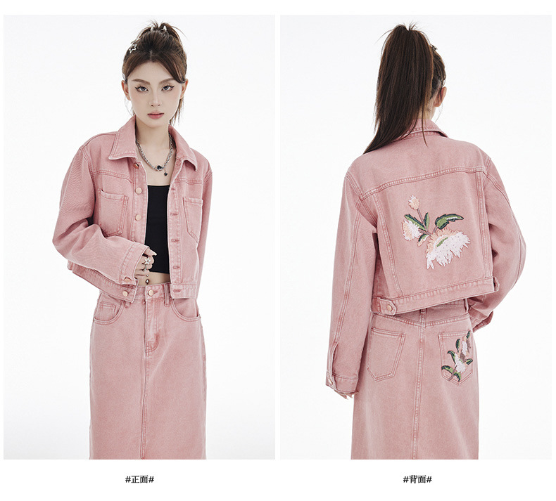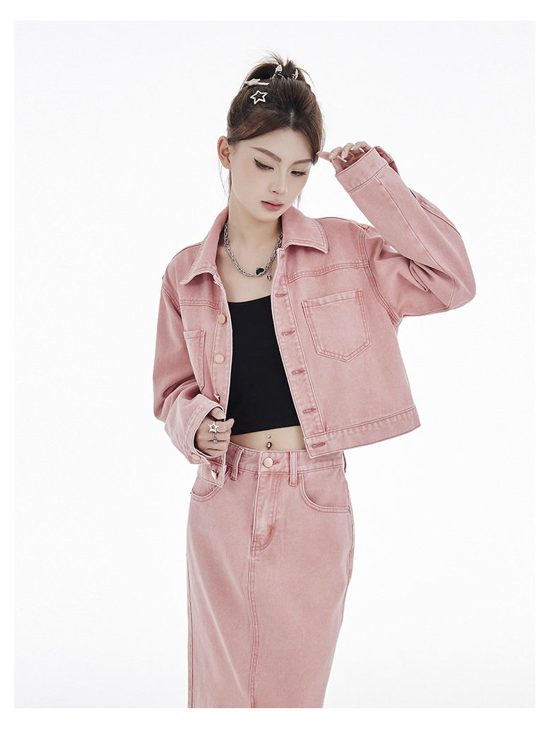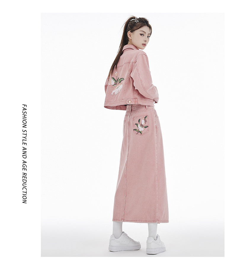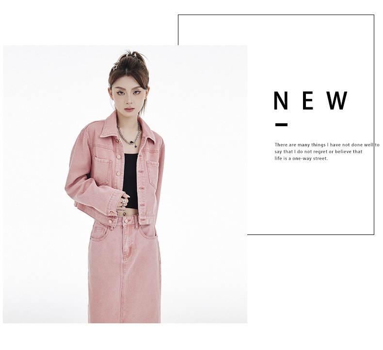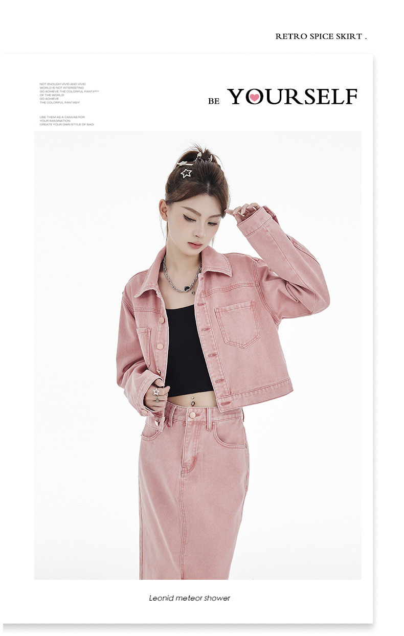 핑크 데님 원피스 여자의 2023 가을 착용 복고풍 스플릿 스커트 투피스 가을과 겨울 패션 모든 매치