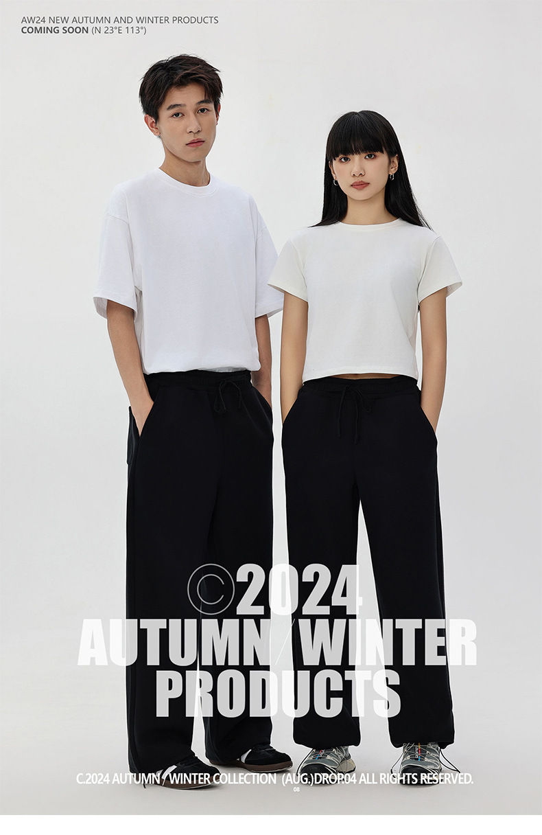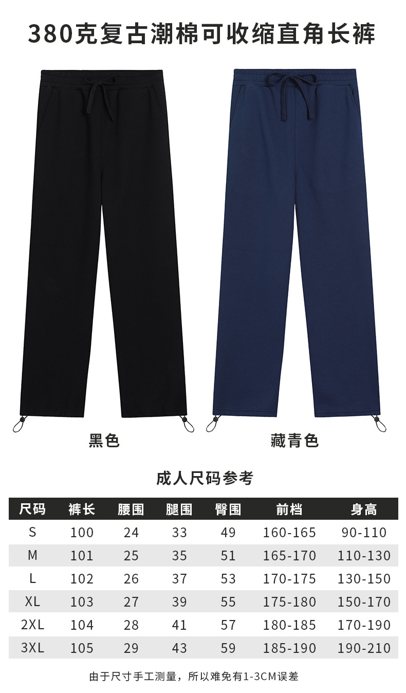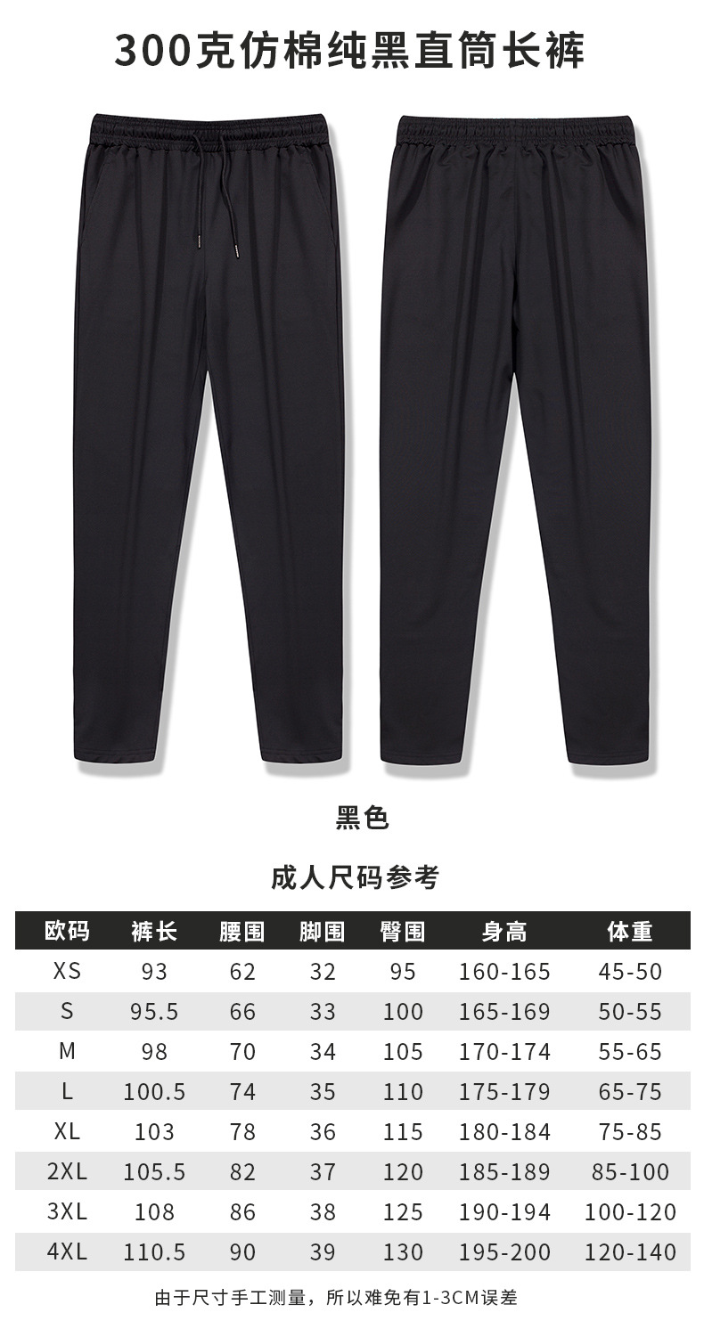 • 300g 모조 면 퓨어 블랙 스트레이트 팬츠
