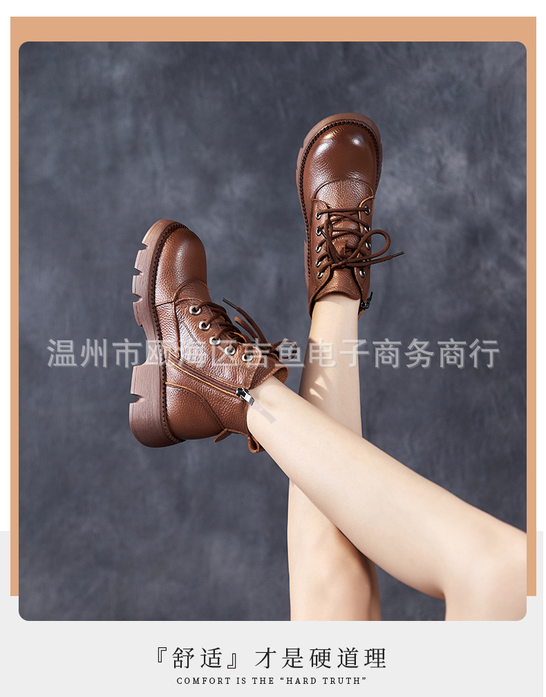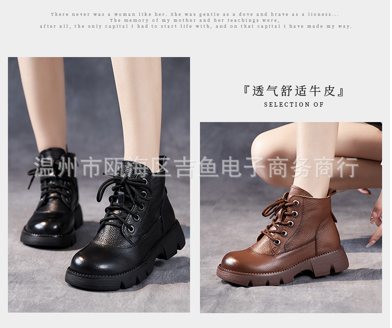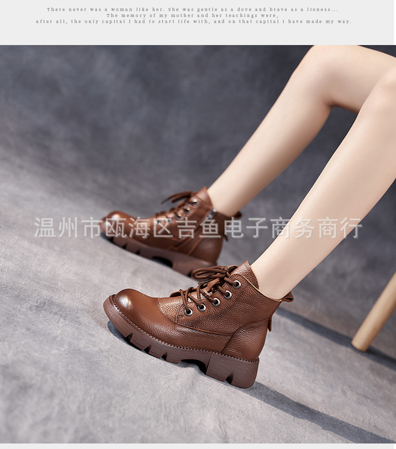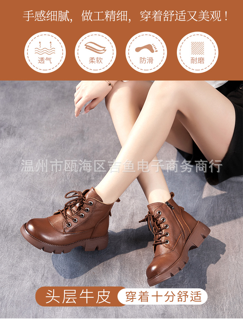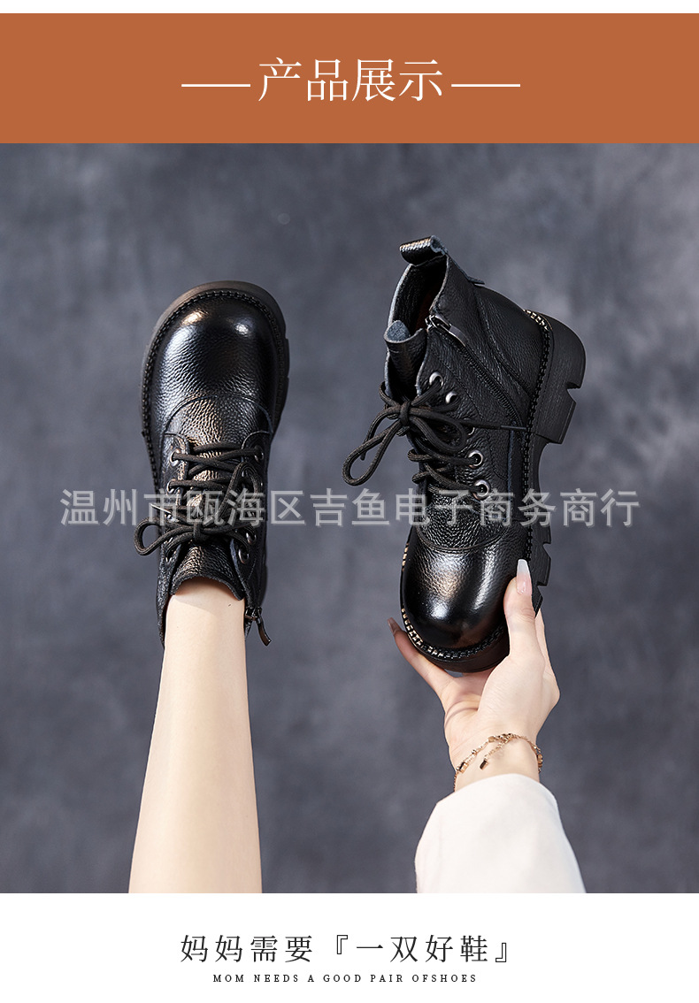 정품 가죽 레이스업 마틴 부츠 중년 여성의 가을 레트로 부츠 미끄럼 방지 내마모성 탑 레이어 소가죽 앵클 부츠 엄마 신발스토어 가기