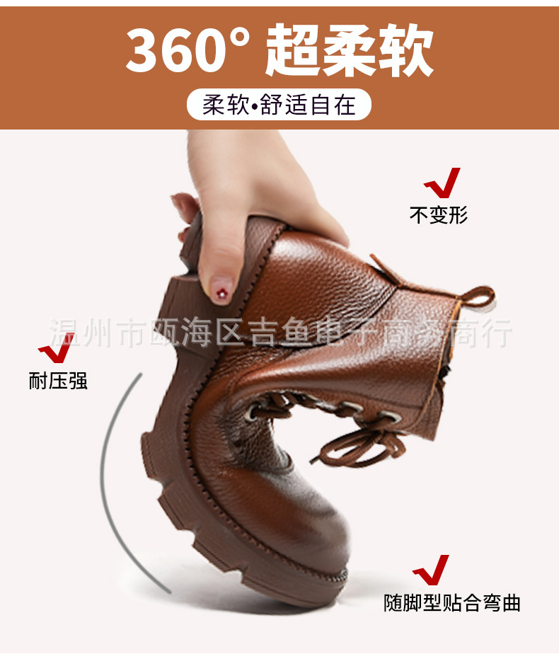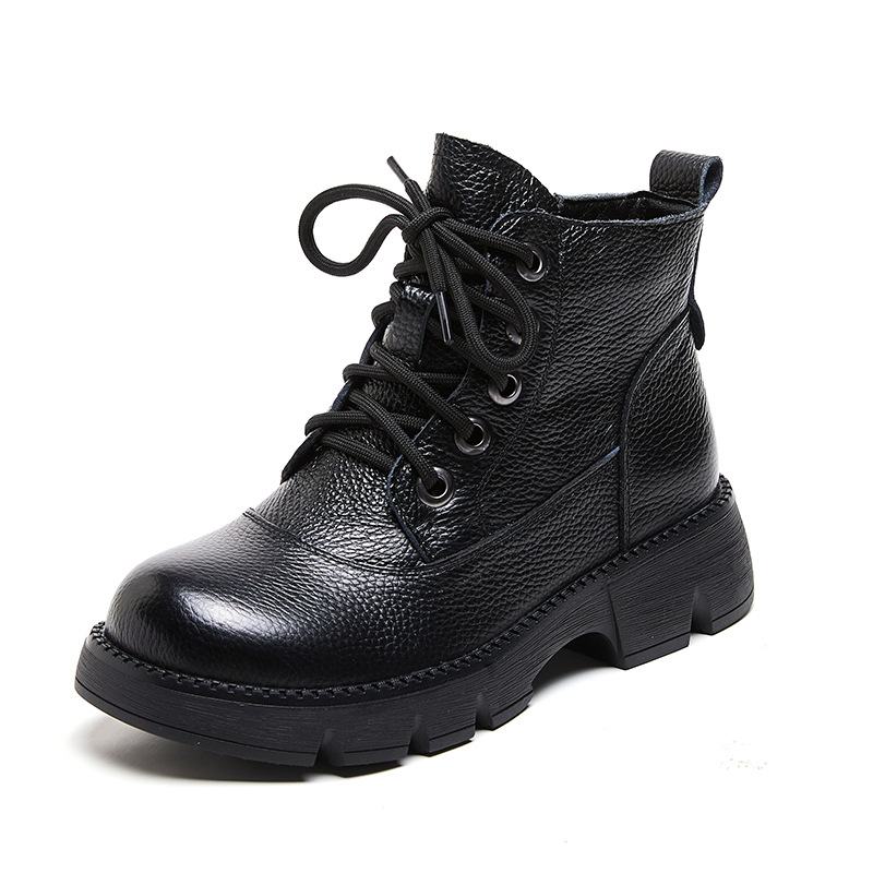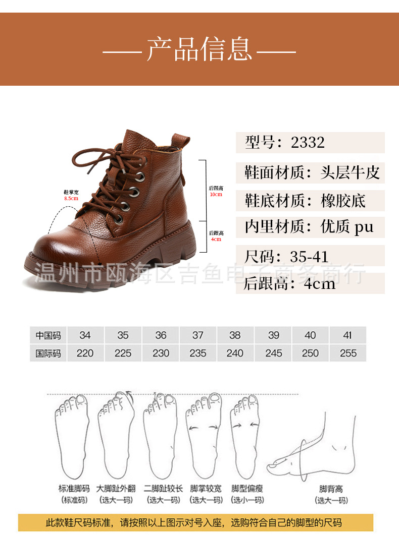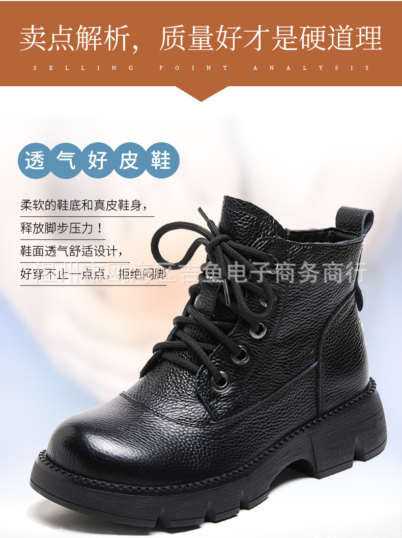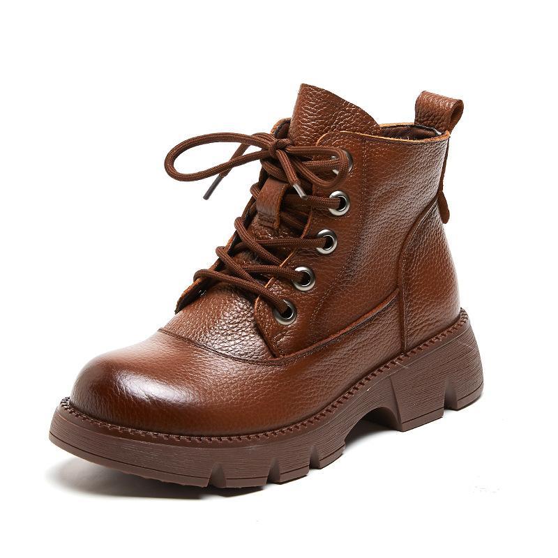 정품 가죽 레이스업 마틴 부츠 중년 여성의 가을 레트로 부츠 미끄럼 방지 내마모성 탑 레이어 소가죽 앵클 부츠 엄마 신발스토어 가기