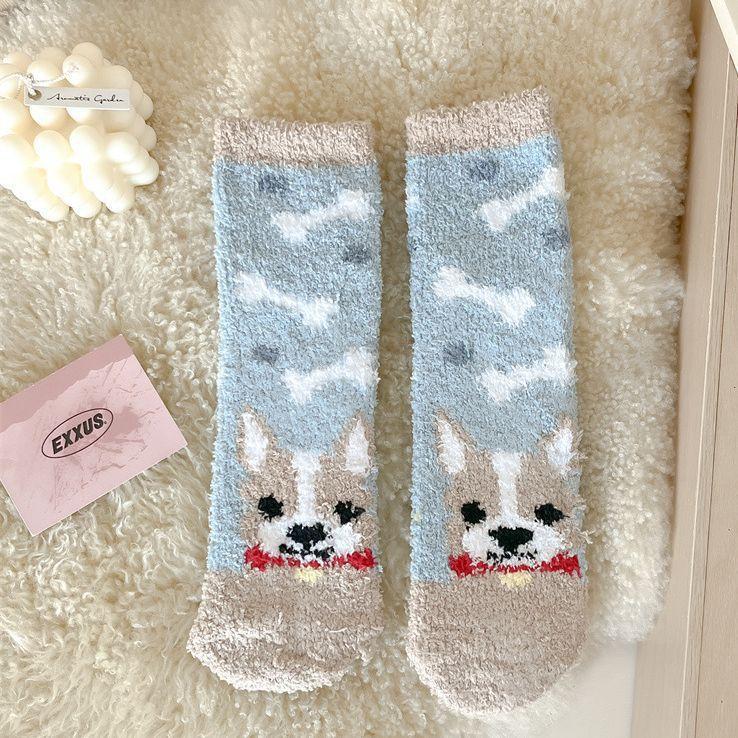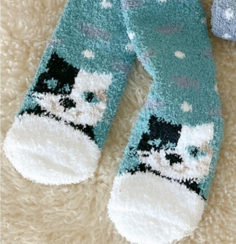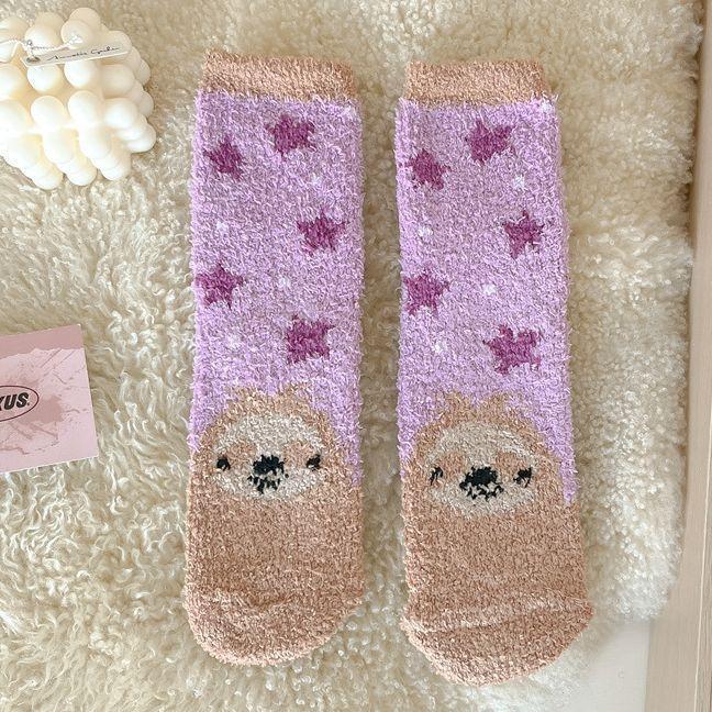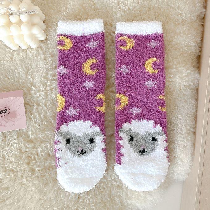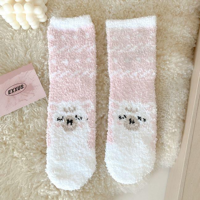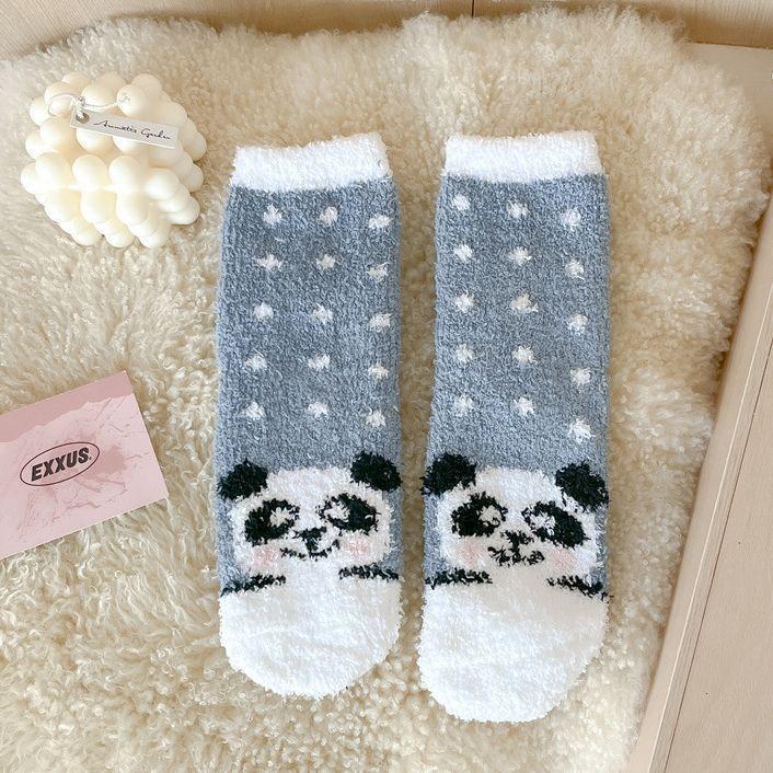 산호 양털 여성 양말 만화 작은 동물 플러시 양말 따뜻한 수면 양말 홈 바닥 양말
