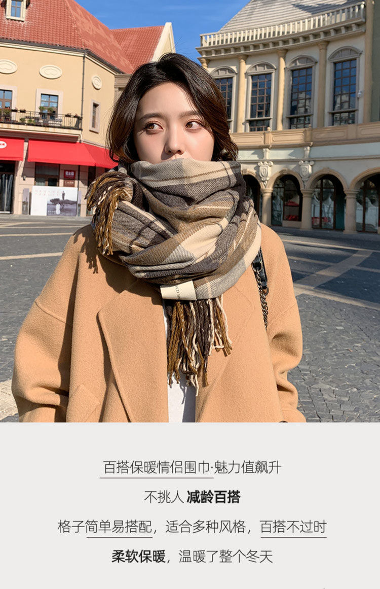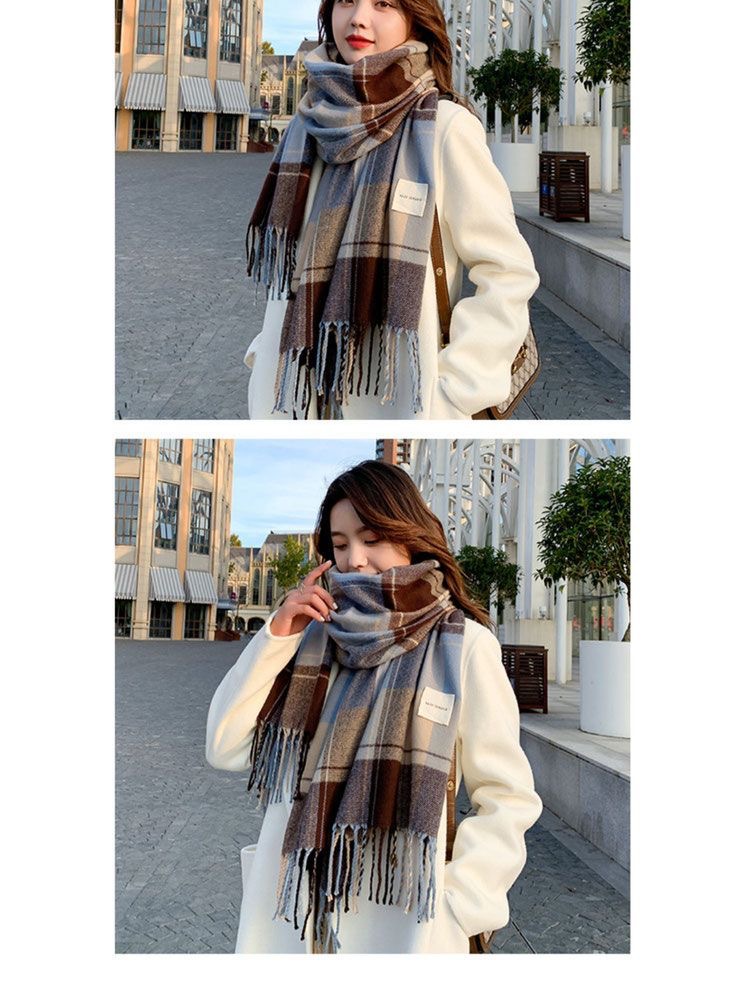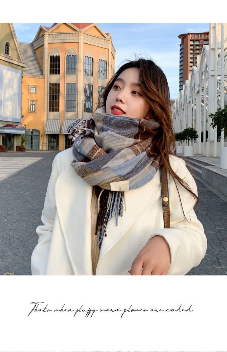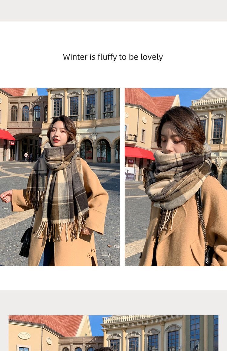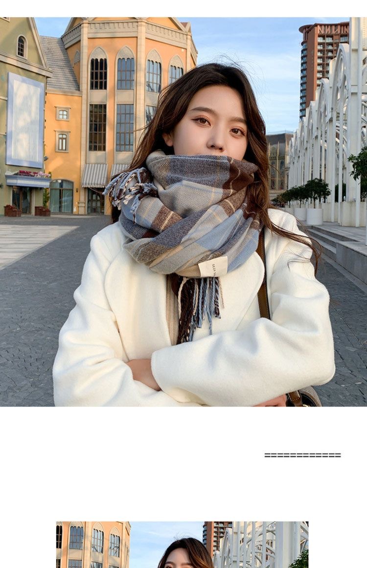 2026년 신상 여성용 모조 캐시미어 체크 스카프, 가을 겨울 한국 스타일 다용도 두꺼운 스카프, 학생 커플용 따뜻한 남녀공용 스카프스토어 가기