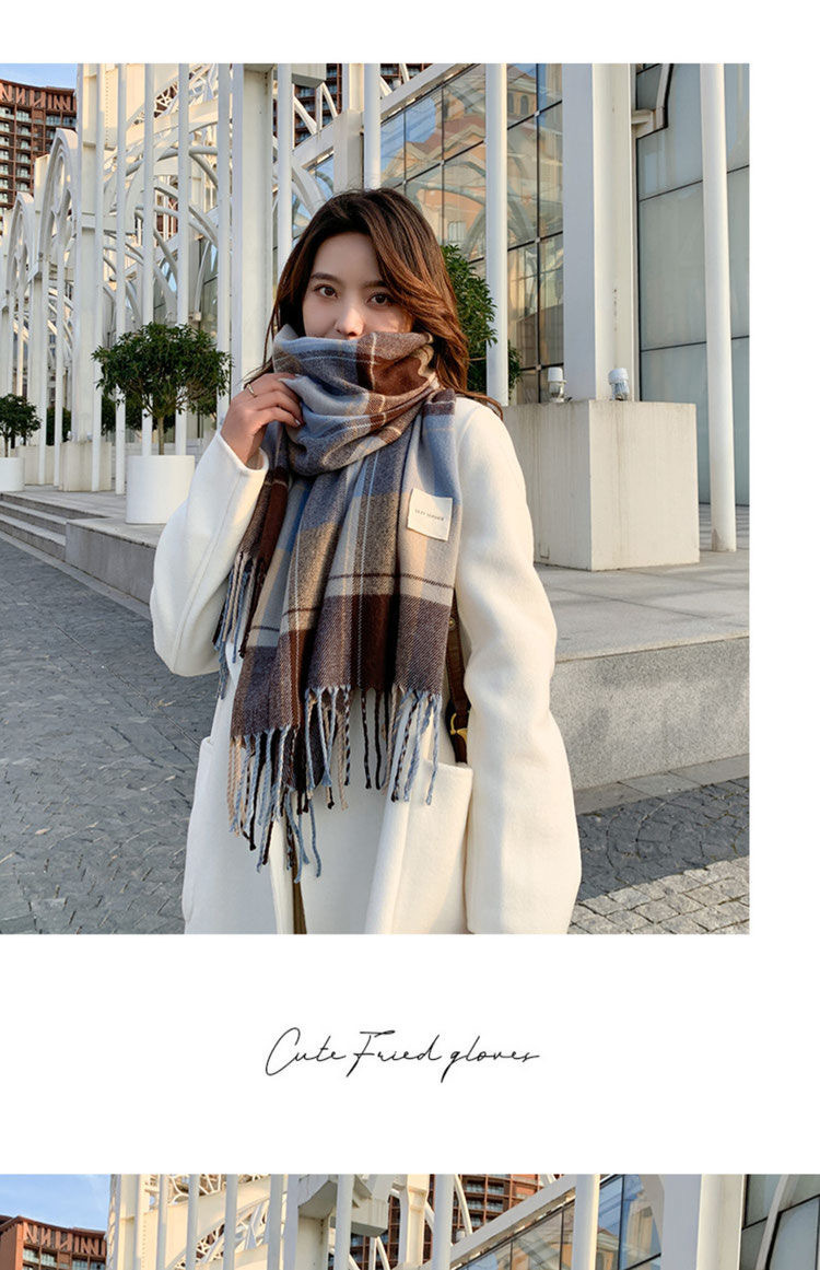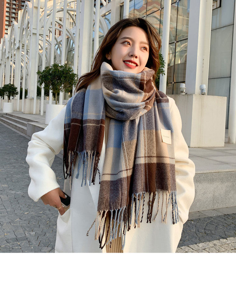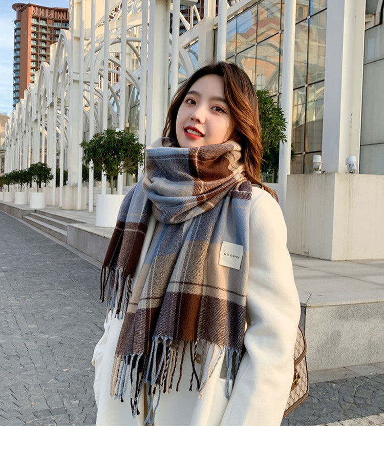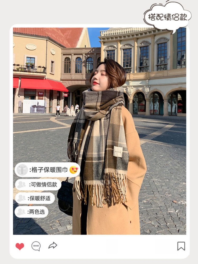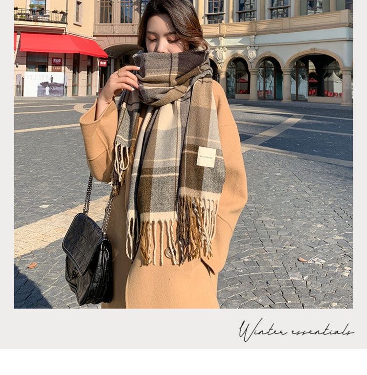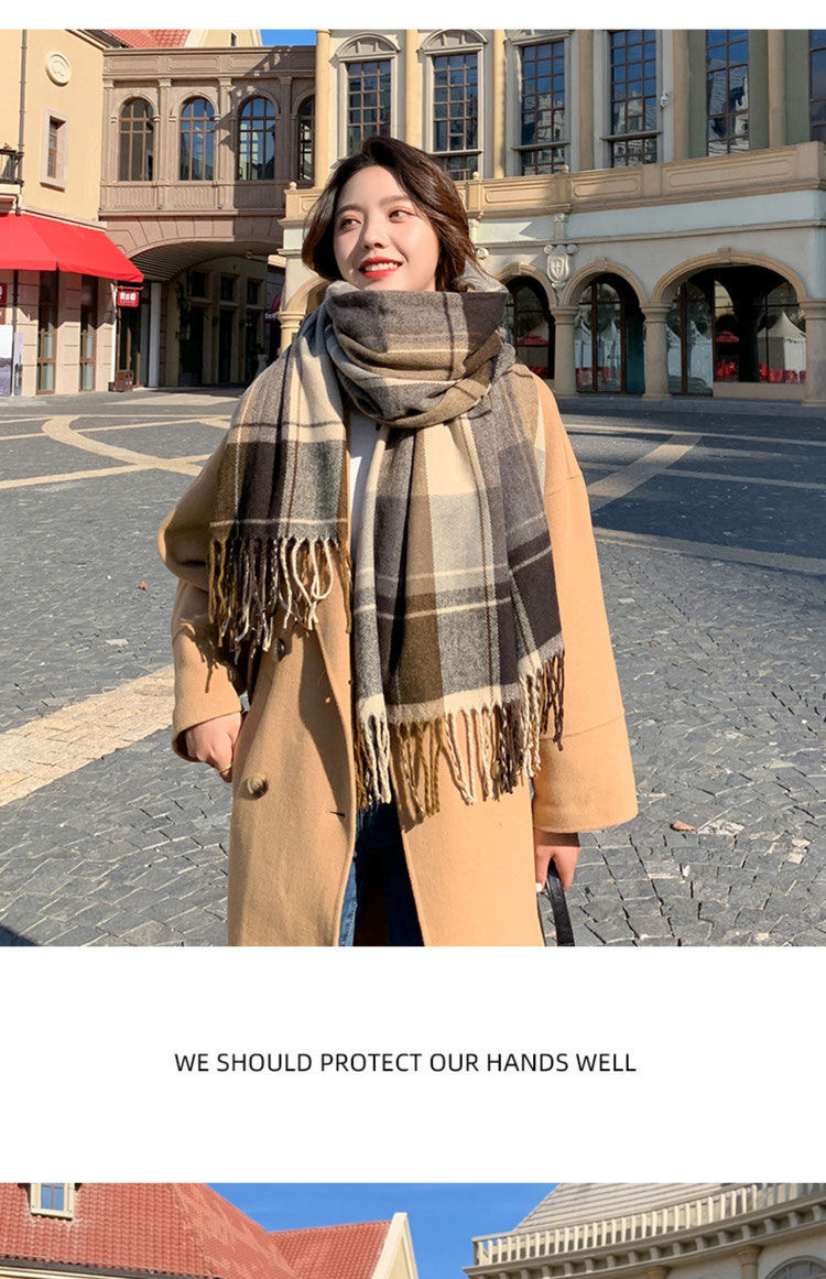 2026년 신상 여성용 모조 캐시미어 체크 스카프, 가을 겨울 한국 스타일 다용도 두꺼운 스카프, 학생 커플용 따뜻한 남녀공용 스카프스토어 가기