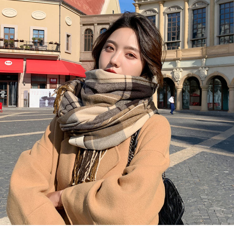 2026년 신상 여성용 모조 캐시미어 체크 스카프, 가을 겨울 한국 스타일 다용도 두꺼운 스카프, 학생 커플용 따뜻한 남녀공용 스카프