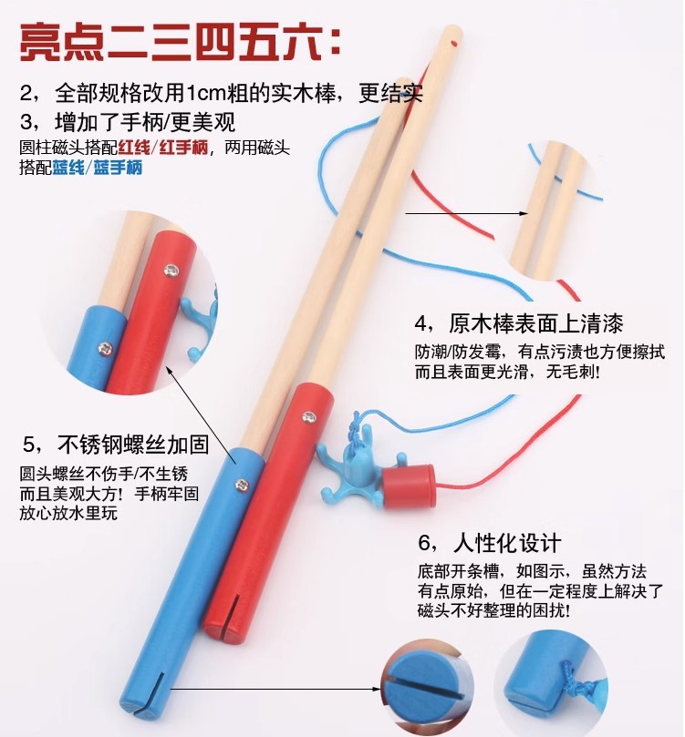 어린이 자기 낚시 장난감 낚싯대 어린이 낚시 아기 낚시 나무 낚싯대 자석 내장 강한 자기력