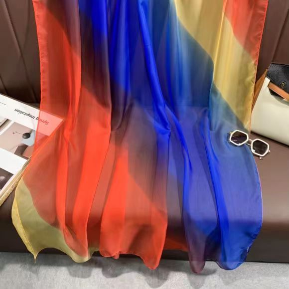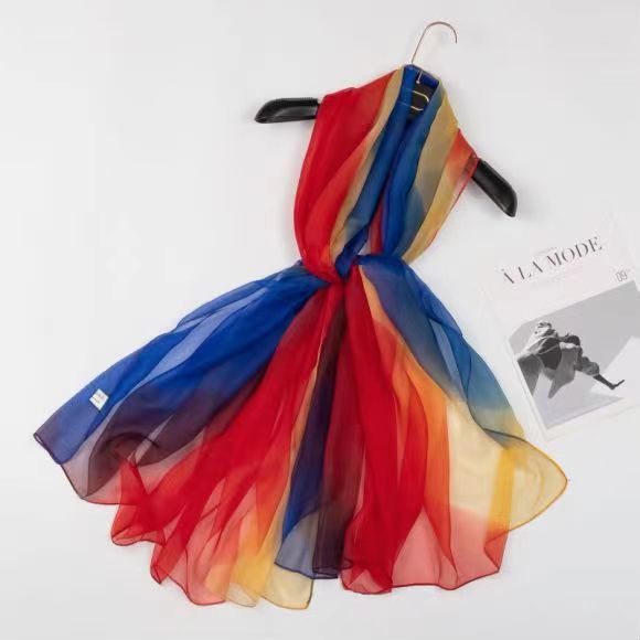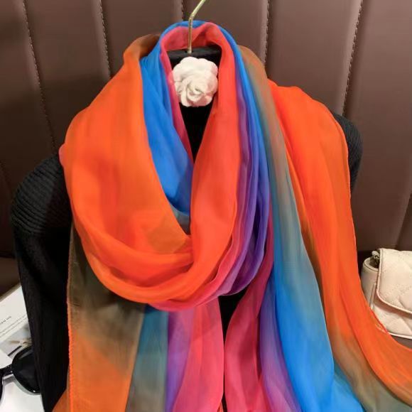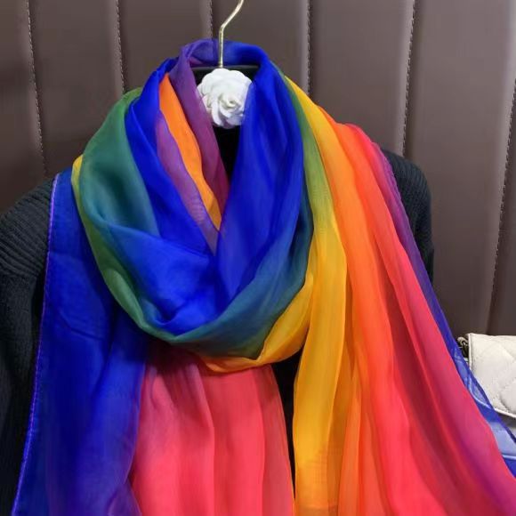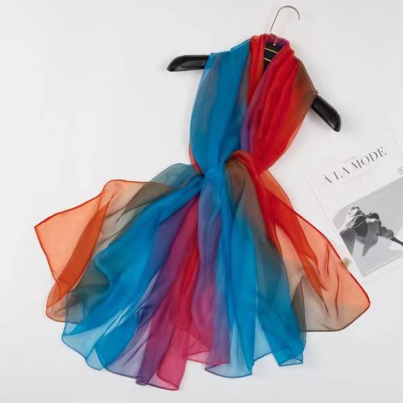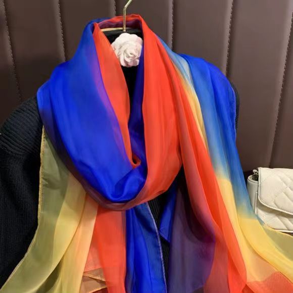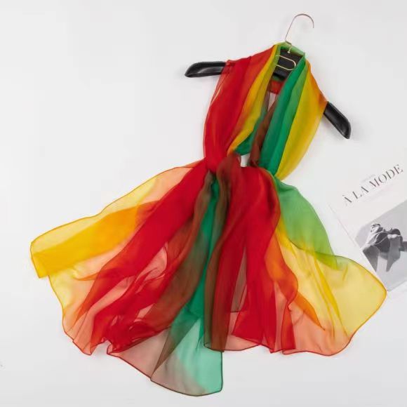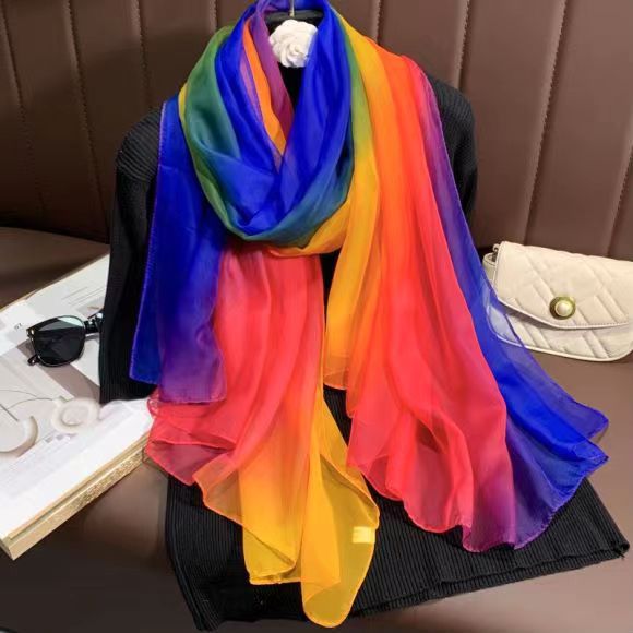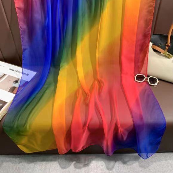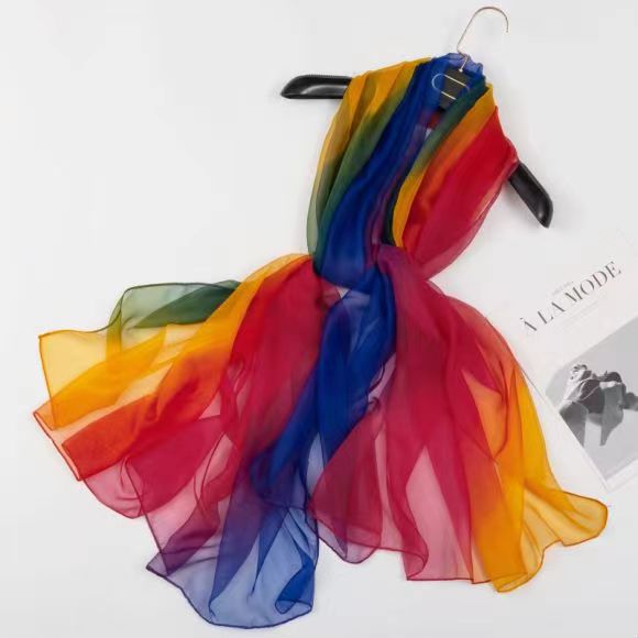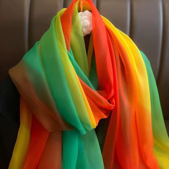 새로운 Yourou 원사 다채로운 레인보우 그라데이션 컬러 얇은 스카프 댄싱 롱 스카프 한국 패션 모든 매치 숄 스카프