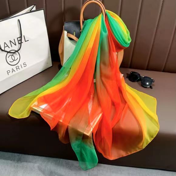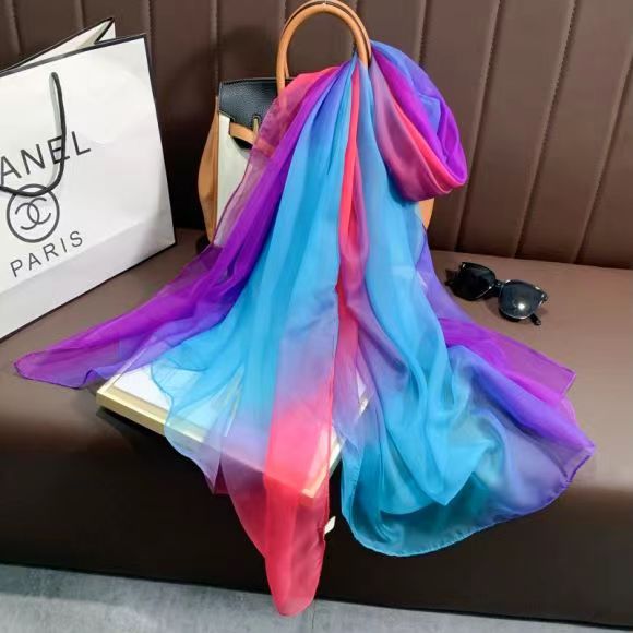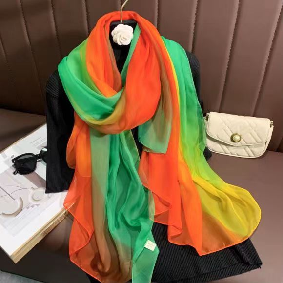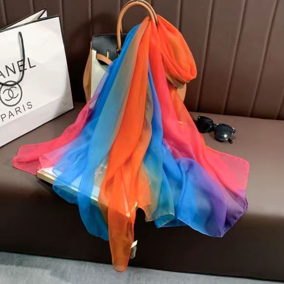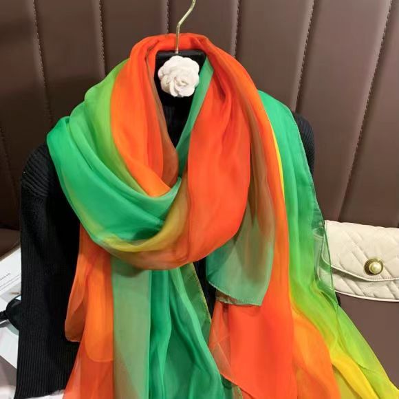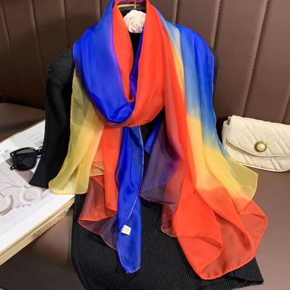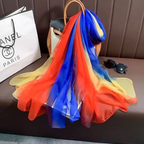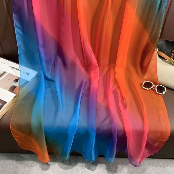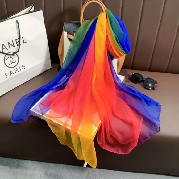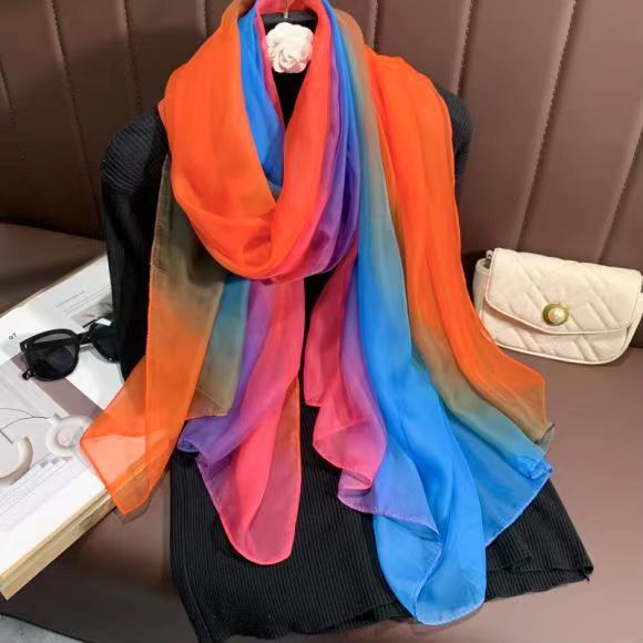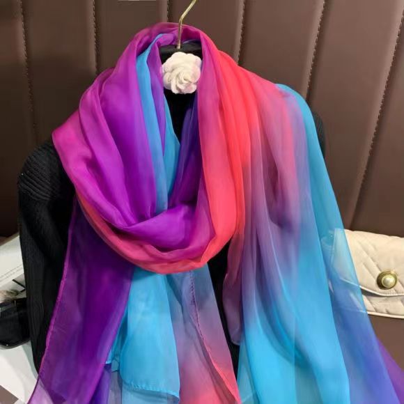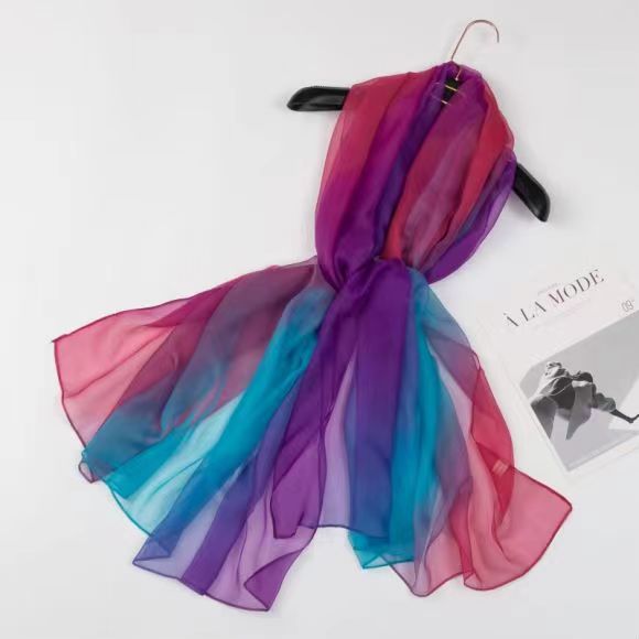 새로운 Yourou 원사 다채로운 레인보우 그라데이션 컬러 얇은 스카프 댄싱 롱 스카프 한국 패션 모든 매치 숄 스카프