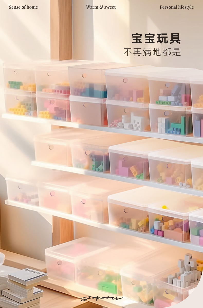어린이 장난감 보관함 투명 데스크탑 레고 보관함 뚜껑이있는 다기능 보관함스토어 가기