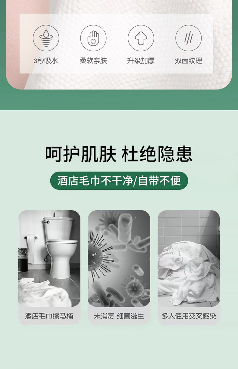 여행용 일회용 압축 페이스 타올, 위생적이고 깨끗하고 피부 친화적인 타올, 건강 센터 두꺼워지고 확대된 흡수성 타올