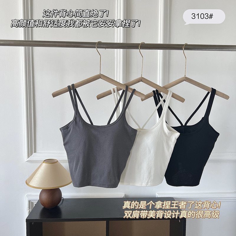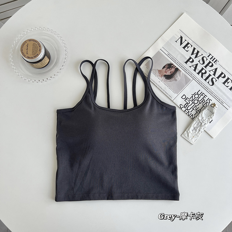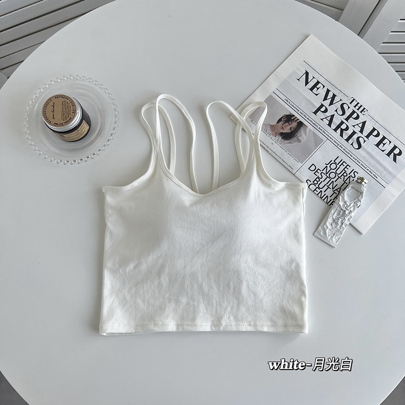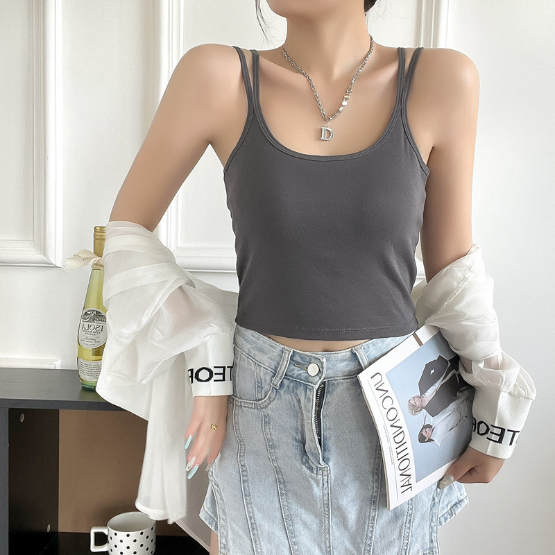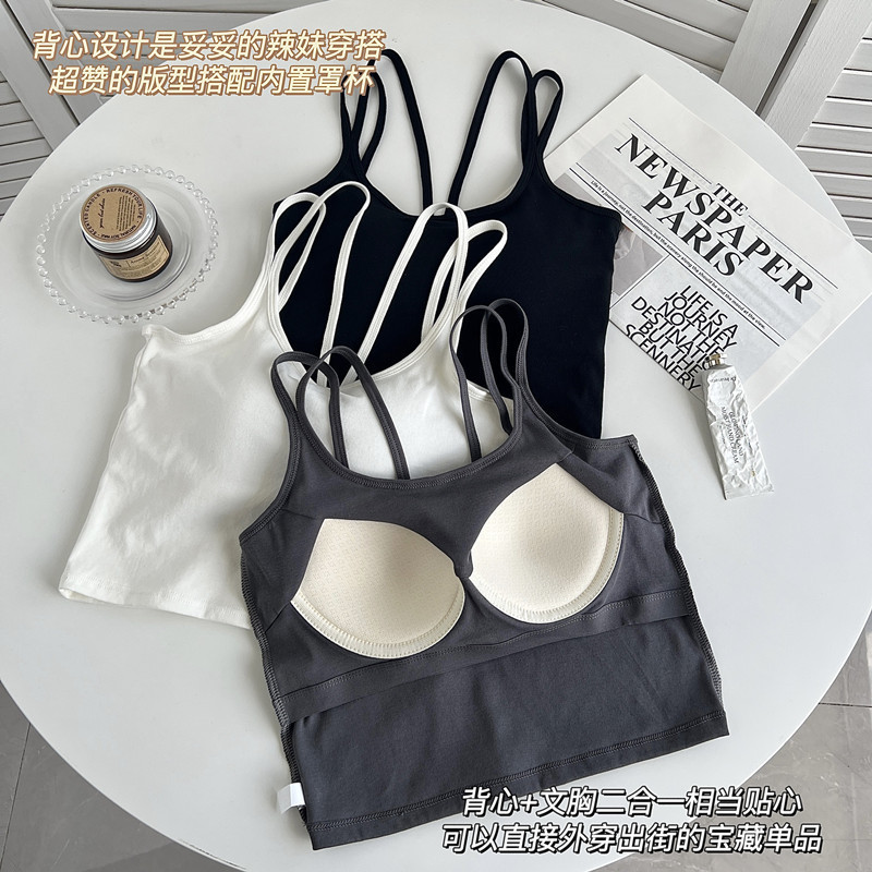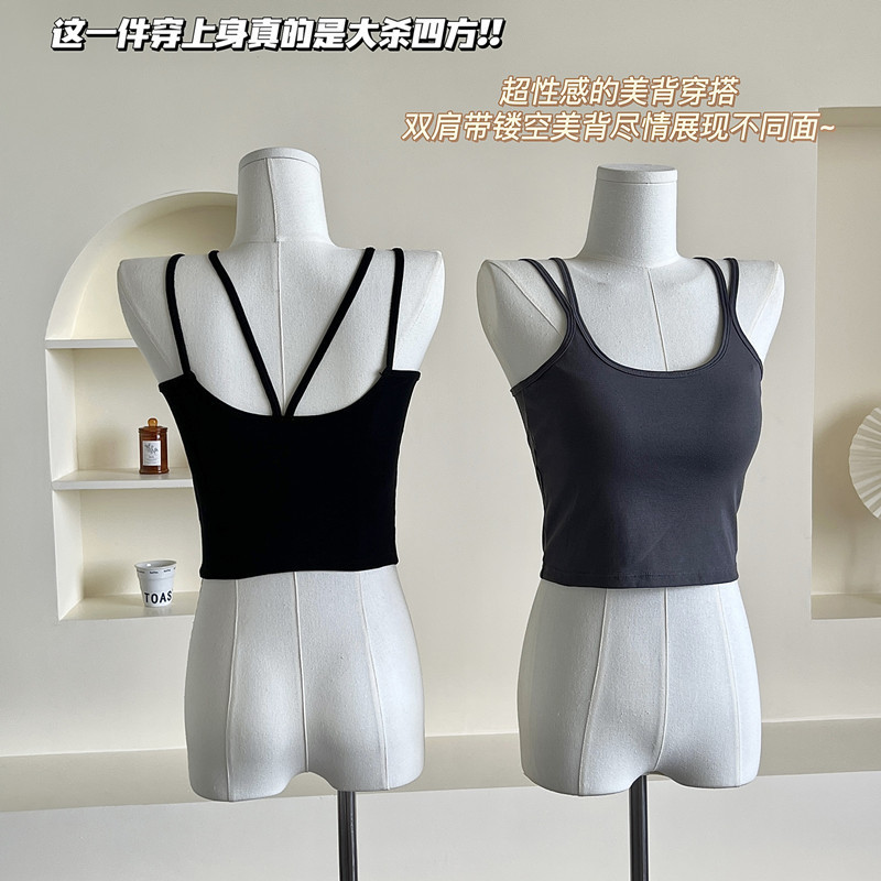 더블 숄더 스트랩 뷰티 스트랩 가슴 패드 원피스 캐미솔 조끼 내부 가슴 랩핑 베이스 슬림핏 슬리밍 여성용 겉옷 탑