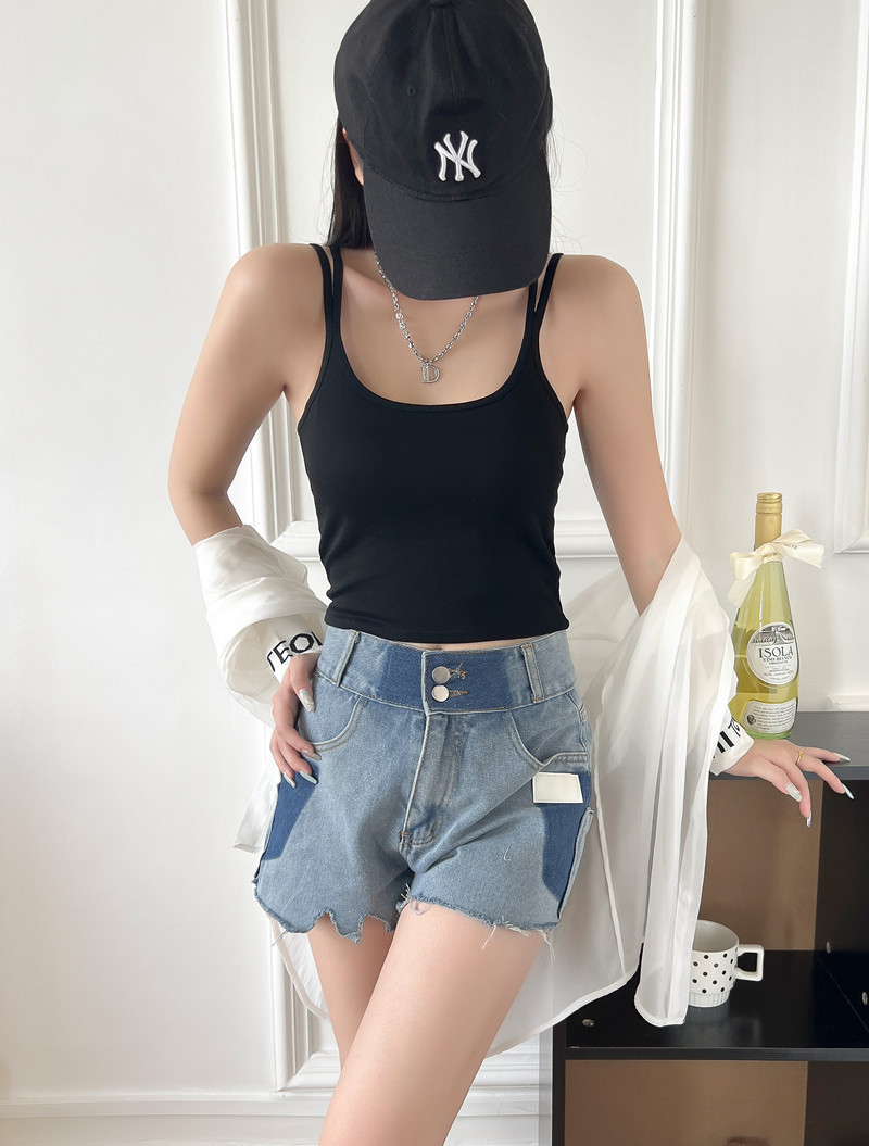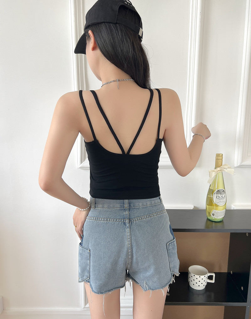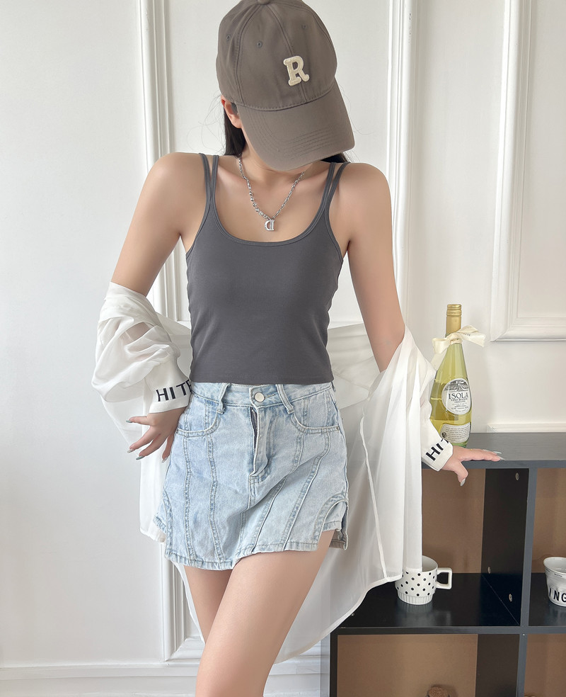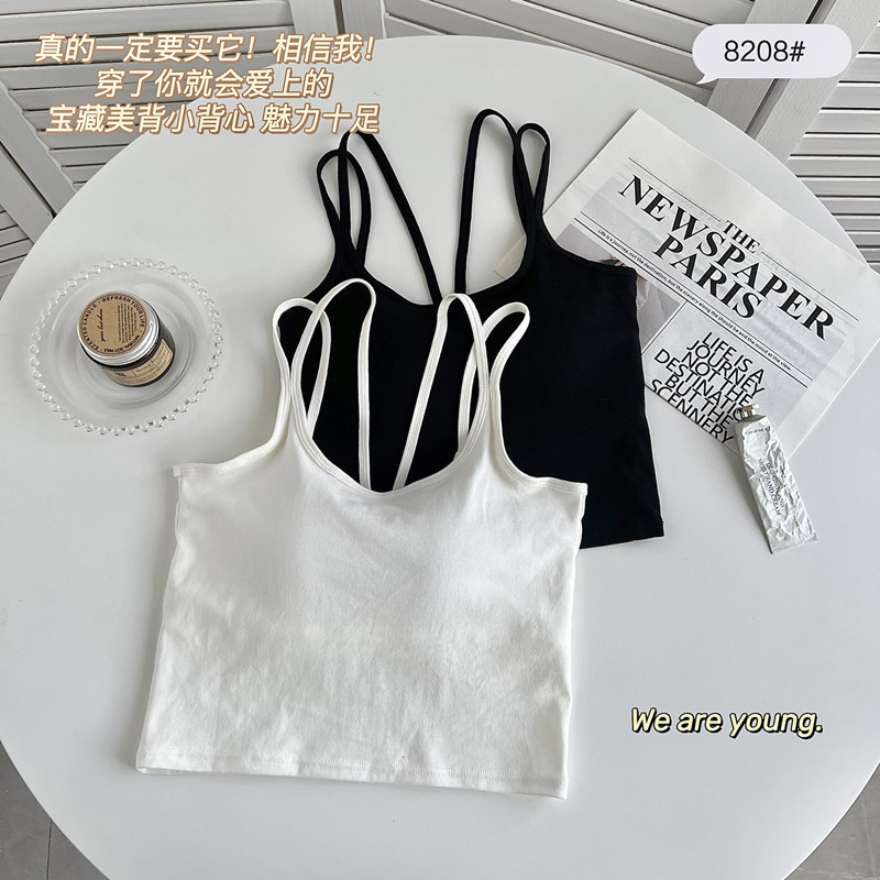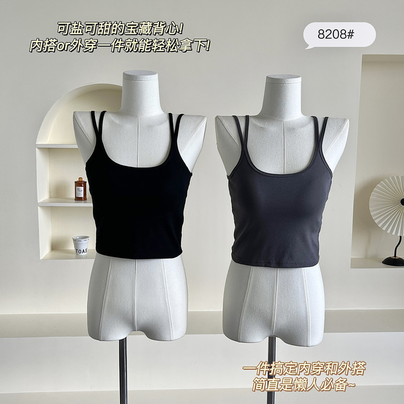 더블 숄더 스트랩 뷰티 스트랩 가슴 패드 원피스 캐미솔 조끼 내부 가슴 랩핑 베이스 슬림핏 슬리밍 여성용 겉옷 탑