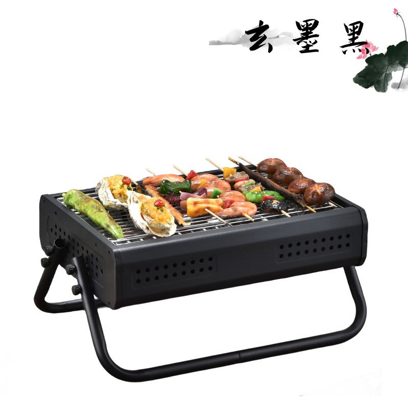 黑色箱式家用户外可折叠烧烤炉 便携多功能露营烧烤炉子 烧烤架