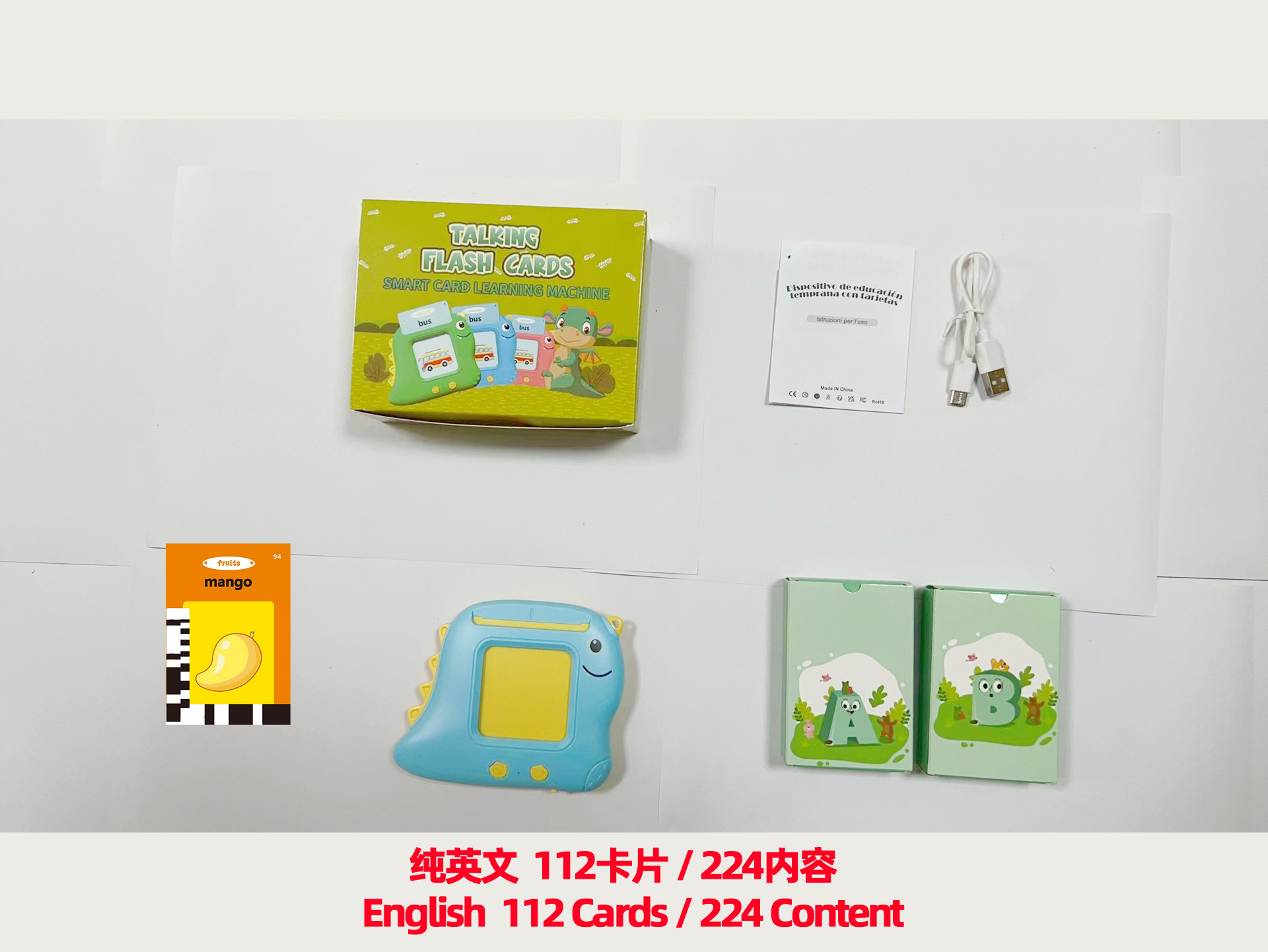 • 꼬마공룡 [112카드 224콘텐츠 + 이탈리아어 + 영어] 그린