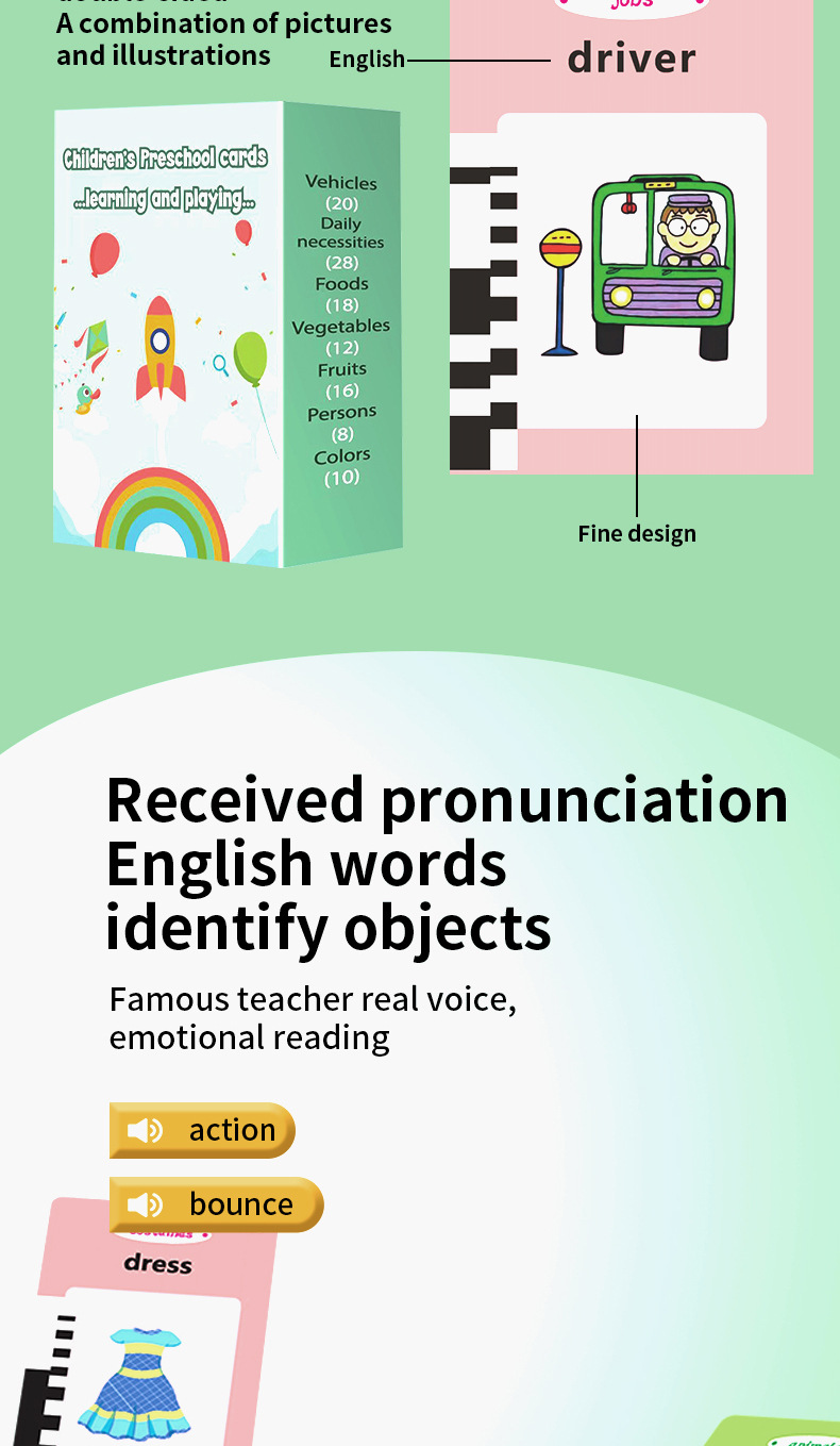 • 꼬마공룡 [112카드 224내용 + 프랑스어 + 영어] 녹색