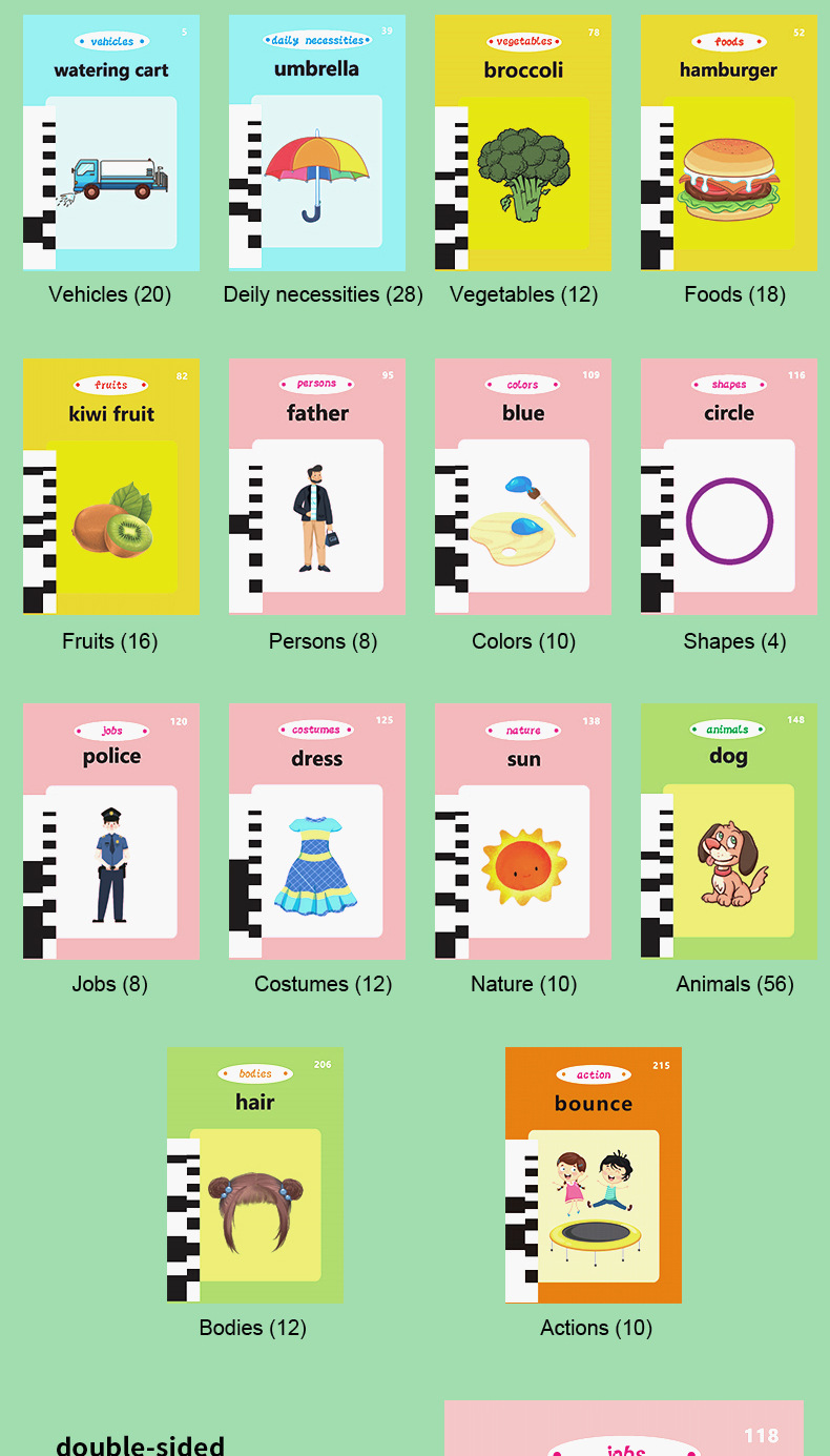 • 꼬마공룡 [112카드 224내용 + 아랍어 + 영어] 녹색