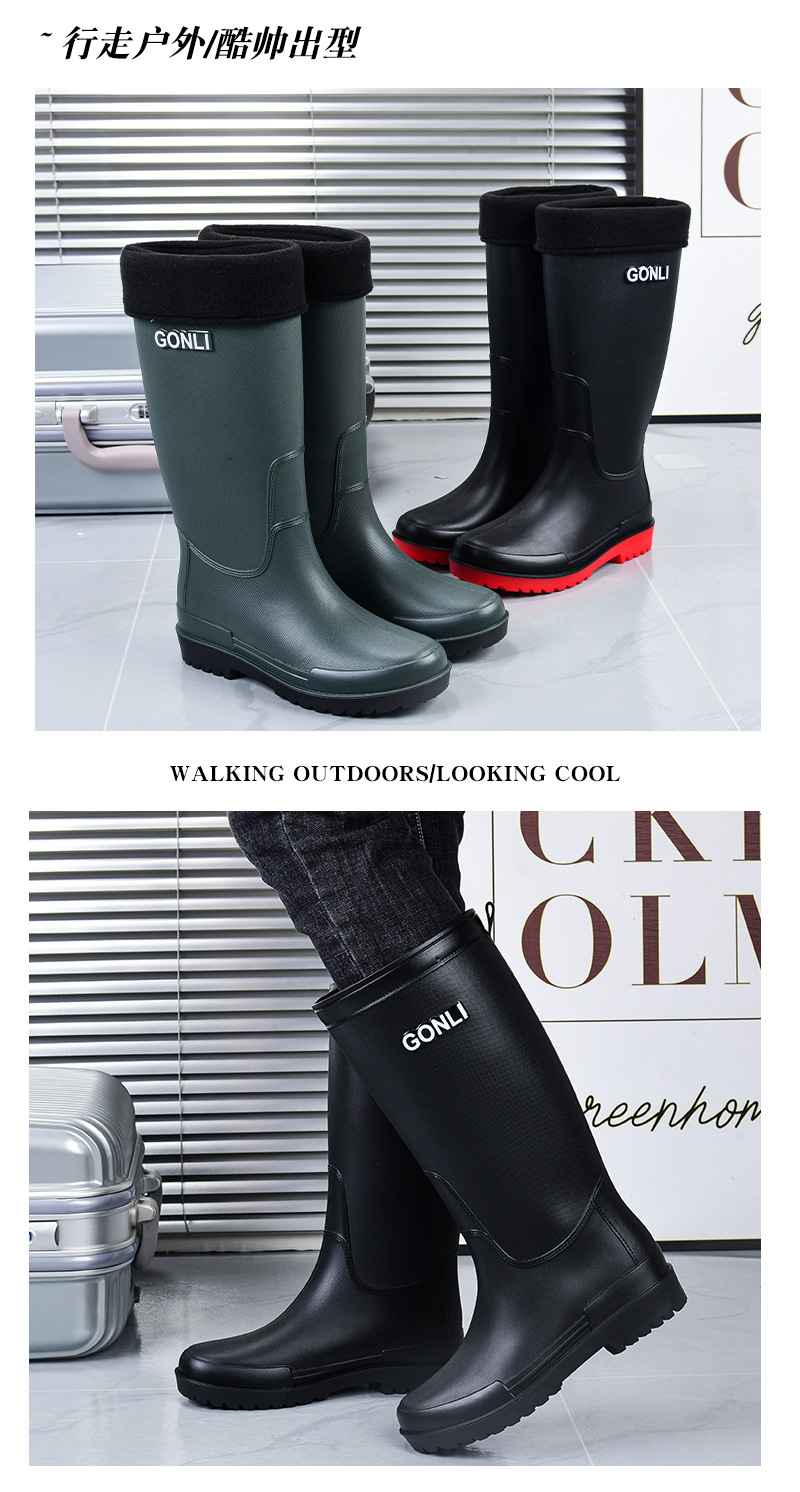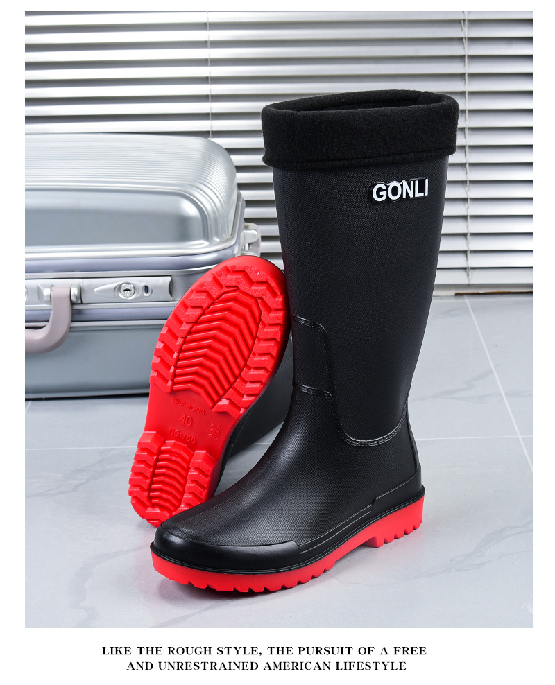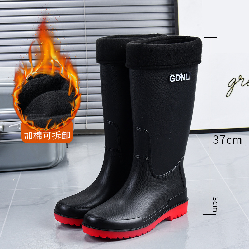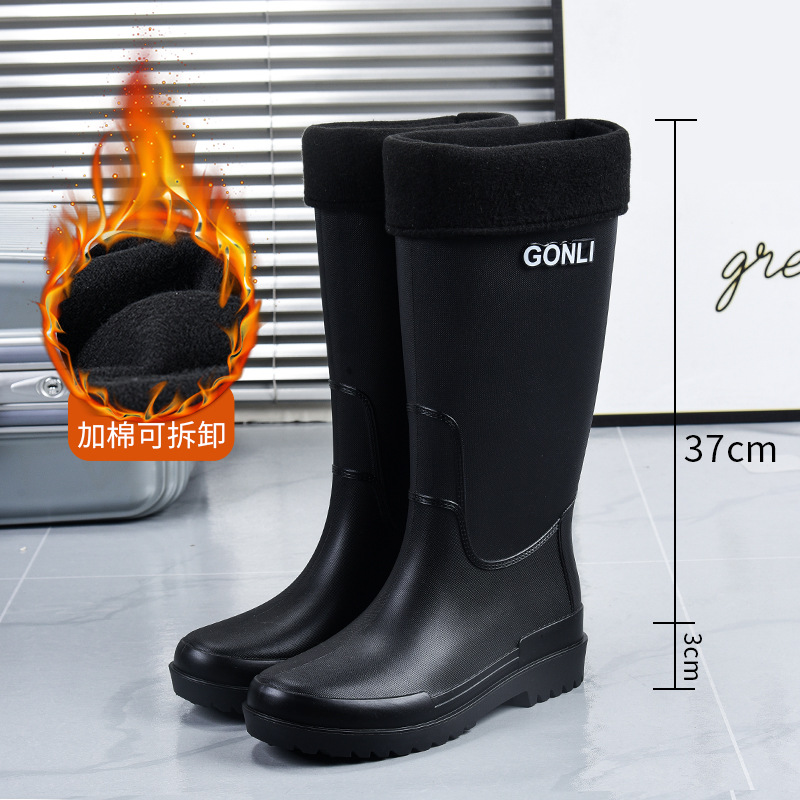 높은 비 부츠 남성 패션 겉옷 미끄럼 방지 방수 물 신발 기모 따뜻한 야외 작업 레인 부츠 도매스토어 가기