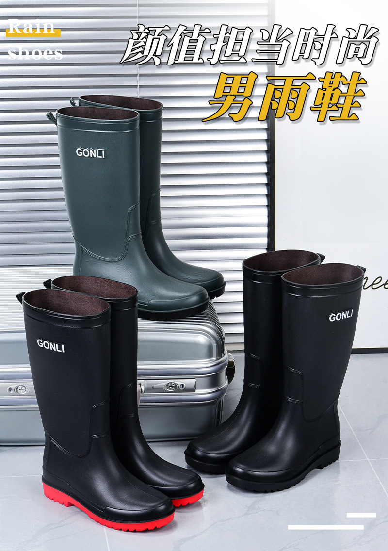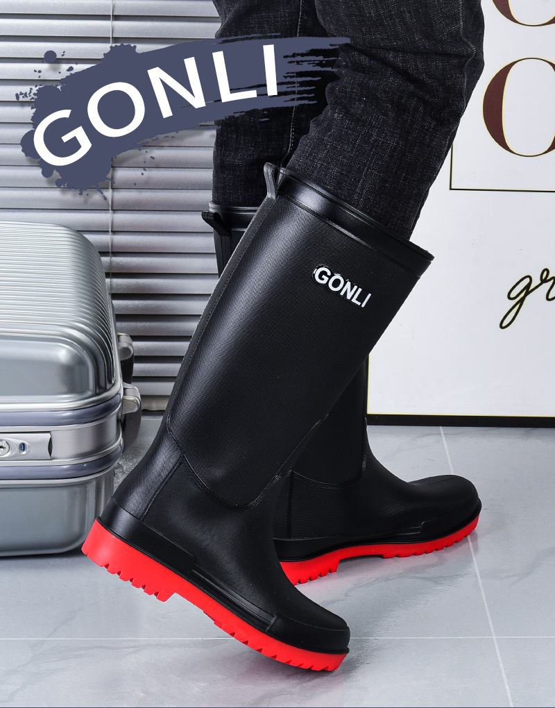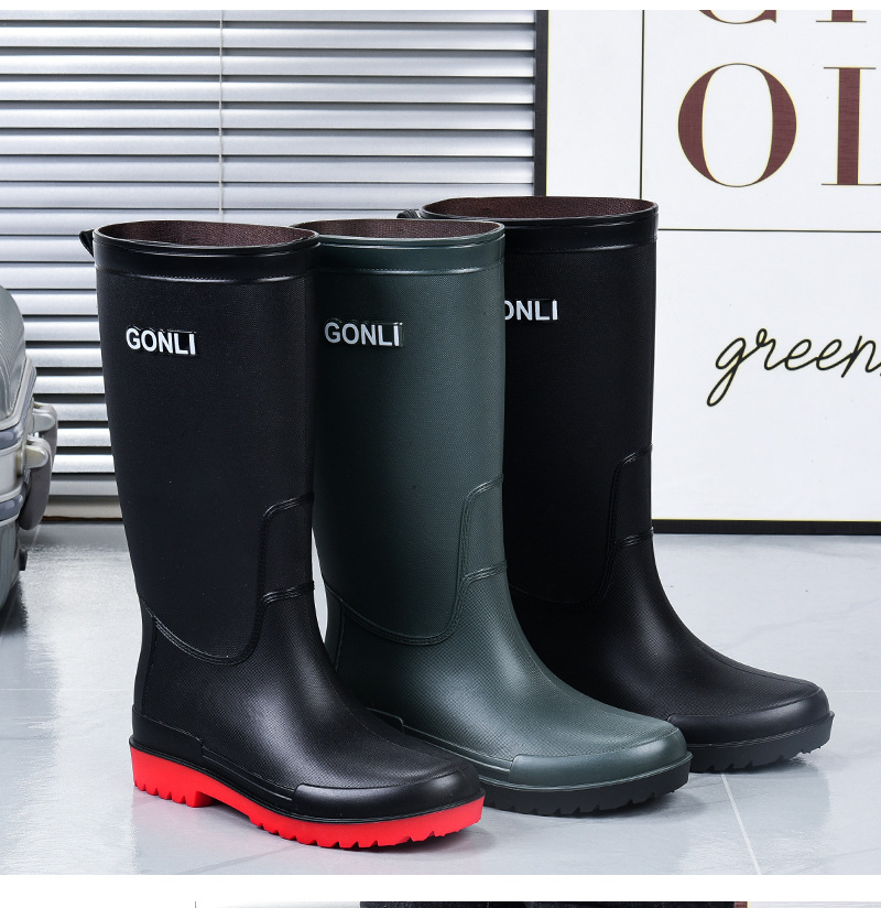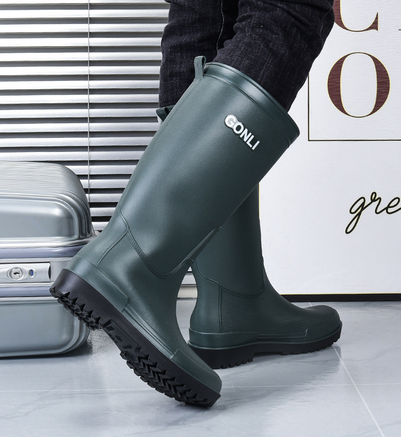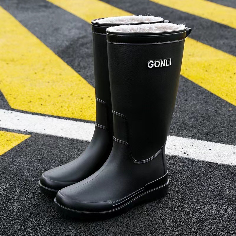 높은 비 부츠 남성 패션 겉옷 미끄럼 방지 방수 물 신발 기모 따뜻한 야외 작업 레인 부츠 도매스토어 가기